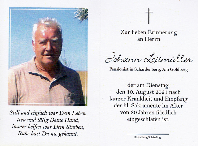 Johann Leitmüller, gest. 10.08.2021 im 81. Lebensjahr