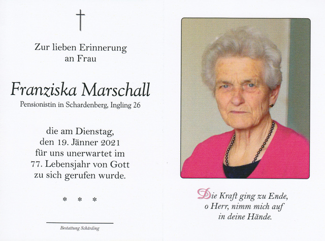 Franziska Marschall, gest. 19.01.2021 im 77. Lebensjahr