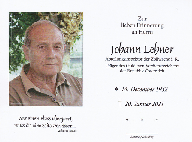 Johann Lehner, gest. 20.01.2021 im 89. Lebensjahr