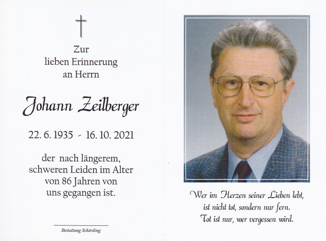 Johann Zeilberger, gest. 15.10.2021 im 86. Lebensjahr