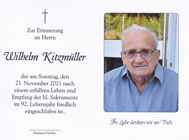Wilhelm Kitzmüller, gest. 21.11.2021 im 92. Lebensjahr