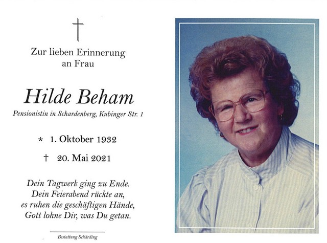 Hilde Beham, gest. 20.05.2021 im 89. Lebensjahr