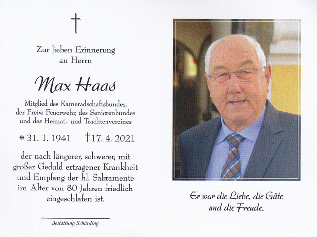 Max Haas, gest. 17.04.2021 im 81. Lebensjahr