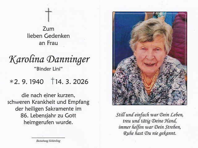 Karolina Danninger, 14.03.2026 im 86. Lebensjahr