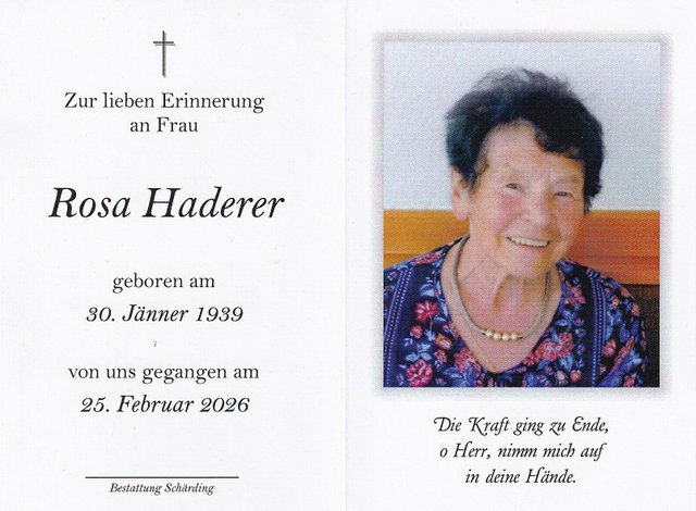 Rosa Haderer, 25.02.2026 im 87. Lebensjahr