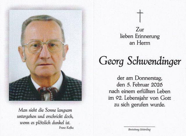 Georg Schwendinger, gest. 05.02.2026 im 92. Lebensjahr