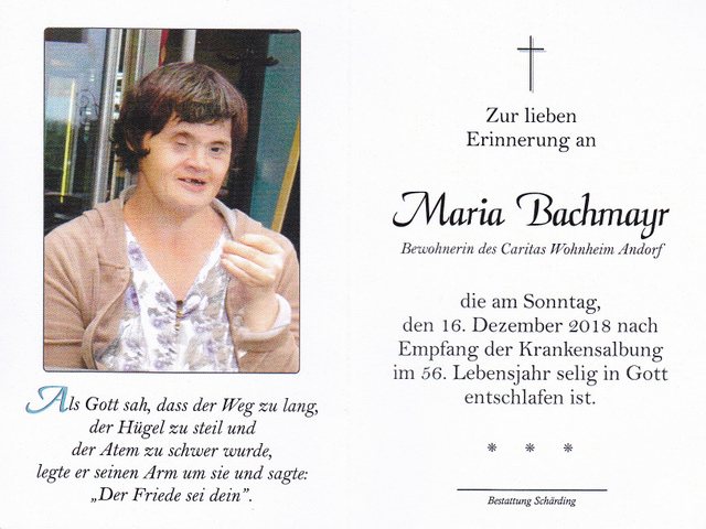 Maria Bachmayr, gest. 16.12.2018 im 56. Lebensjahr