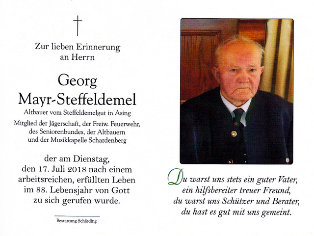 Georg Mayr-Steffeldemel, gest. 17.07.2018 im 88. Lebensjahr