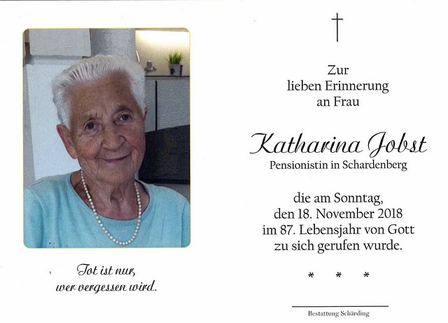 Katharina Jobst, gest. 17.11.2018 im 87. Lebensjahr