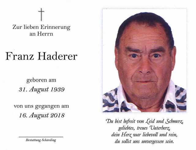 Franz Haderer, gest. 16.08.2018 im 79. Lebensjahr