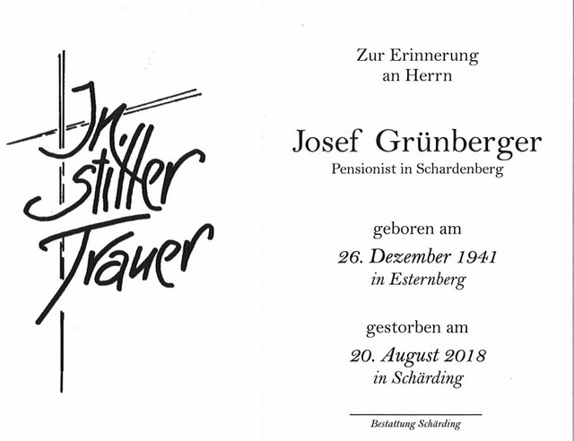 Josef Grünberger, gest. 20.08.2018 im 77. Lebensjahr