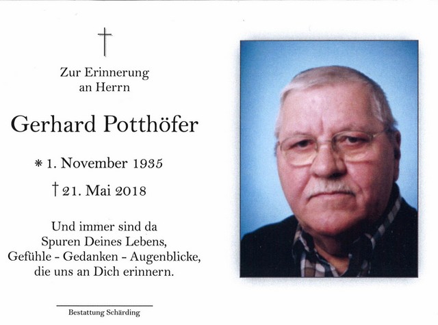 Gerhard Potthöfer, gest. 21.05.2018 im 83. Lebensjahr