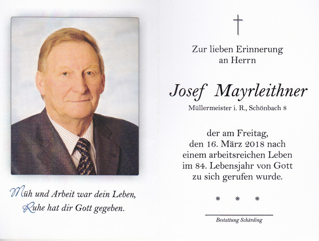 Josef Mayrleithner, gest. 16.03.2018 im 84. Lebensjahr