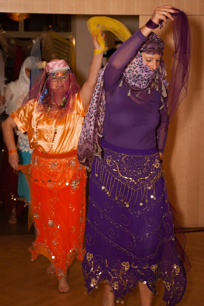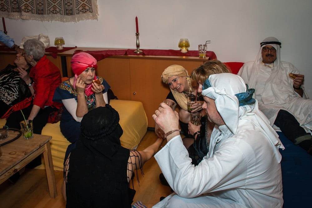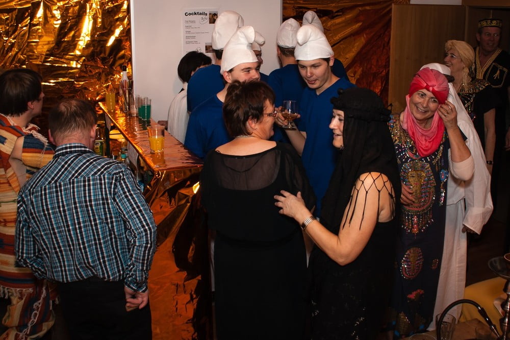 Gestärkt durch "Fliegende Teppiche" und süße Versuchungen tanzte die Faschingsgesellschaft bis in die Morgenstunden. DJ Ali Baba sorgte für beschwingte Tanzmusik. Wer eine Verschnaufpause brauchte, ließ sich im gemütlich gestalteten orientalischen Cafe nieder. Von der vielen Bewegung durstig und von der Schönheit der verschleierten Damen geblendet, tankten die "reichen Scheichs" an der Bar nicht nur orientalische Tröpfchen. Für Unterhaltung sorgten auch die tollen Einlagen.