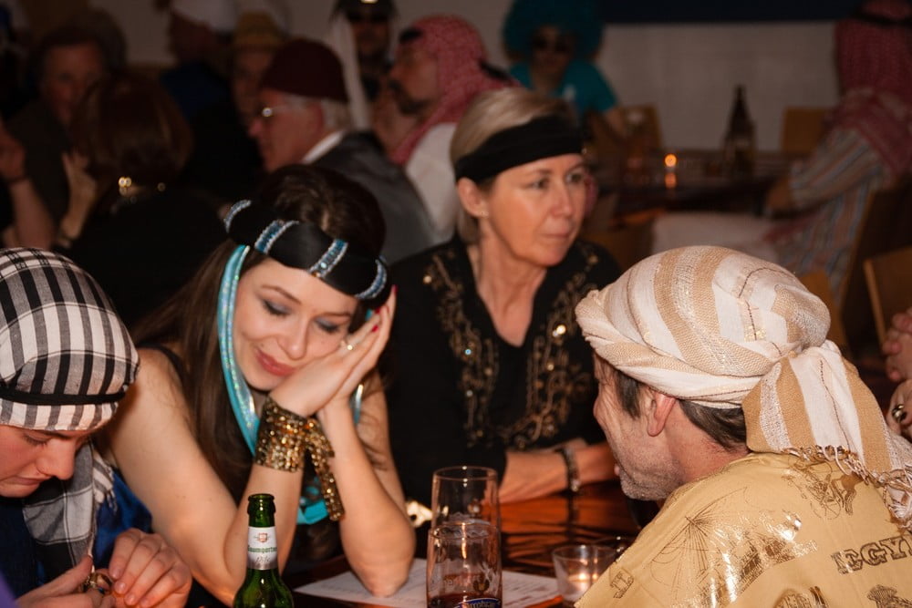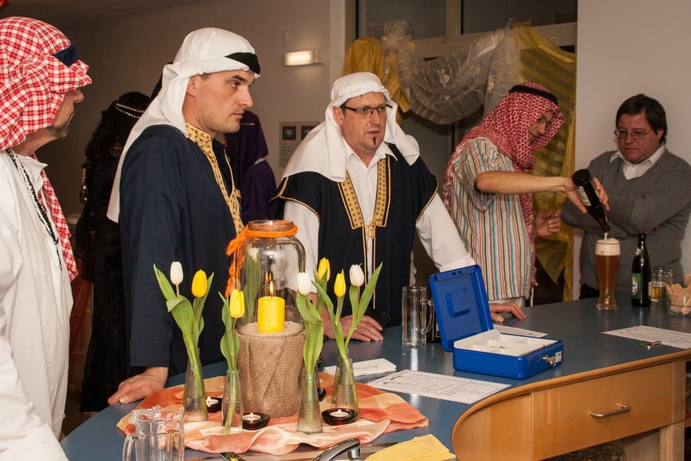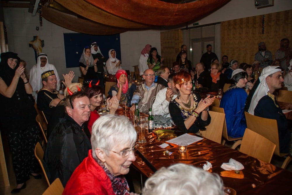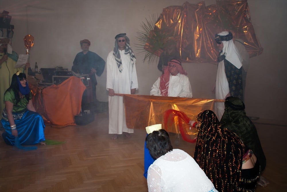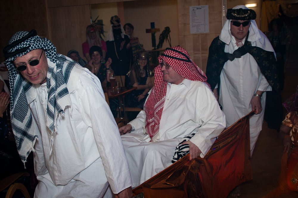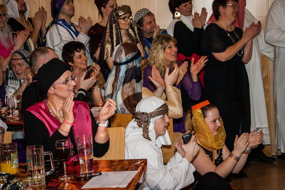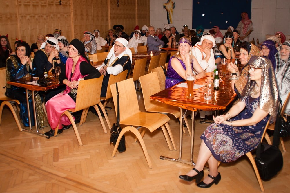 Scheichs, Kalifen, die Könige aus dem Morgenland, Beduinen, Bauchtänzerinnen und Haremsdamen stiegen am 28. Februar 2014 die Treppen zum Pfarrsaal hinauf, der wunderbar geschmückt zum Eintauchen in die "Geschichten von 1001 Nacht" einlud.