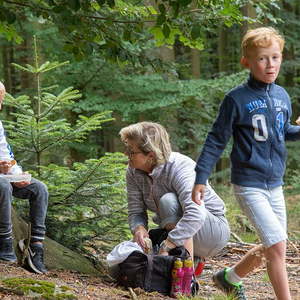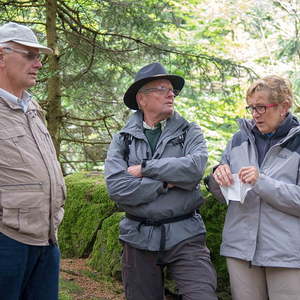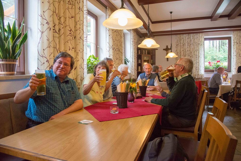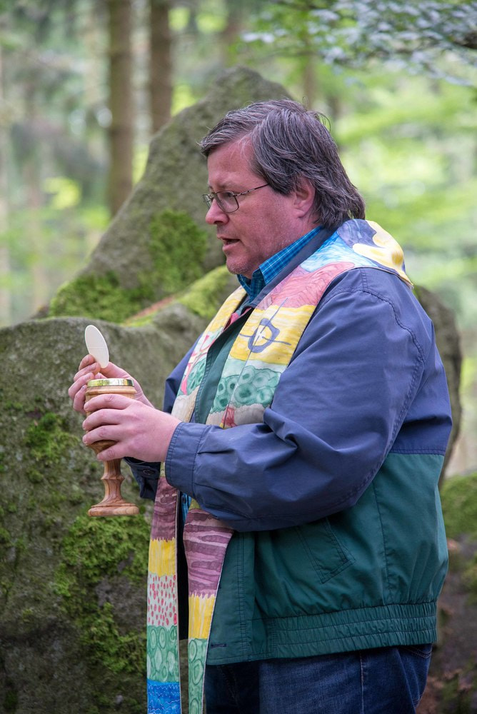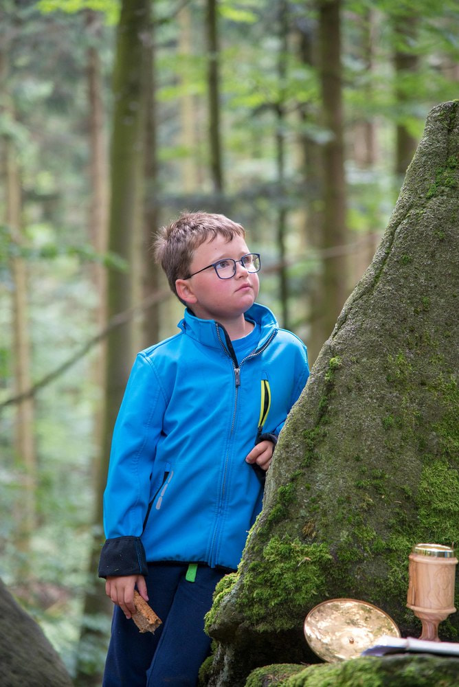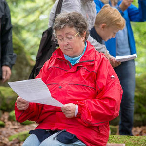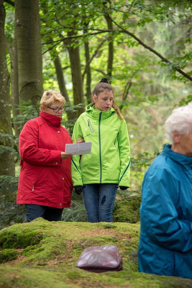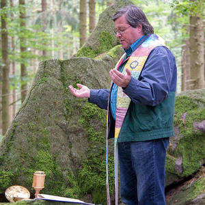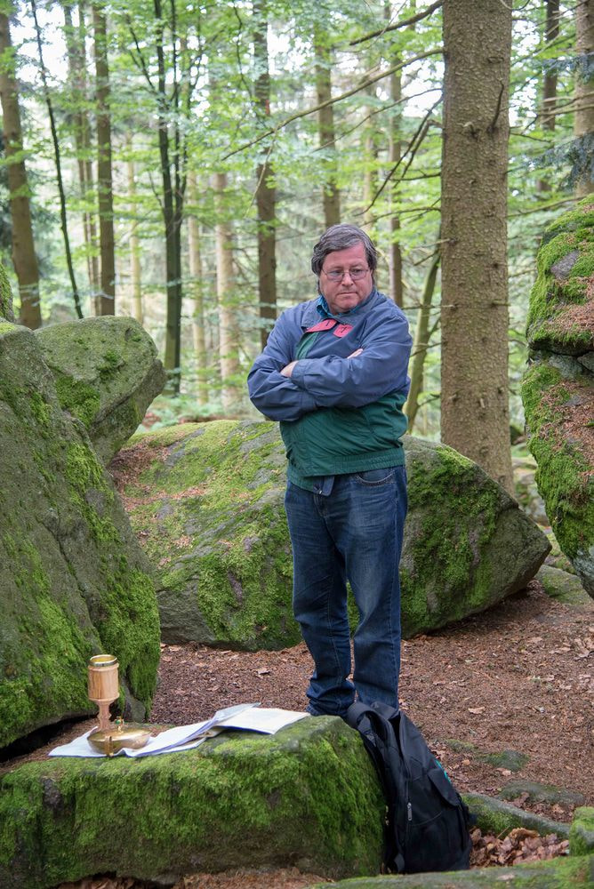 Ein weißer Hirsch rettete ihn vor dem sicheren Tod. Auf einem Waldpfad ging es weiter an großen moosbewachsenen Granitblöcken vorbei bis zum aus mächtigen Urgesteinsbrocken gebildeten Doppelgipfel. Dort wurde mit Dechant Mag. Eduard Bachleitner der Gottesdienst gefeiert. Die musikalische Umrahmung übernahm Michael Brandstetter. Im Anschluss an die Messe wurde im Gasthaus "Stampf´n gemeinsam zu Mittag gegessen.