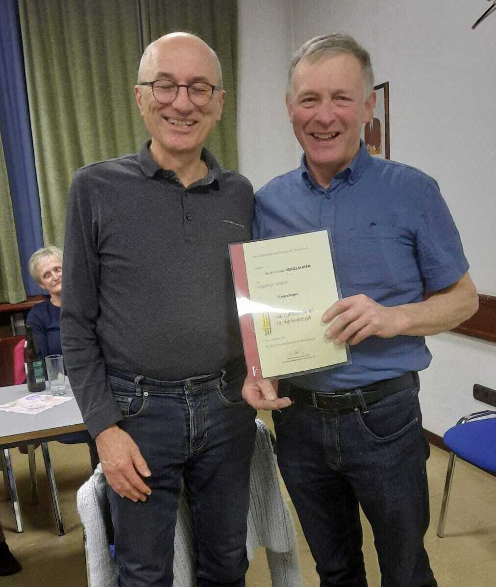 Rudi Hainzl und Karl Ratzenböck erhielten Dank und Anerkennung für 40 Jahre Chormusik. Franz Grüner und Franz Vogelmayer erhielten die goldene Nadel, Wolfgang Gattringer und Johann Ratzenböck die silberne Nadel für Kirchenmusik. Leider konnte Burgi Desl die Urkunde für ihr 40jähriges Wirken im Chor nicht mehr entgegennehmen – in einer Gedenkminute wurde ihrer und ihres unermüdlichen Einsatzes und ihrer Freude am Singen gedacht. Im Namen der Pfarre bedanken wir uns beim Kirchenchor und bei Chorleiter Josef Ganhör sen. für euren Einsatz in der Pfarre, und freuen uns schon auf das diesjährige Kirchenkonzert gemeinsam mit dem Musikverein am 9. März.
