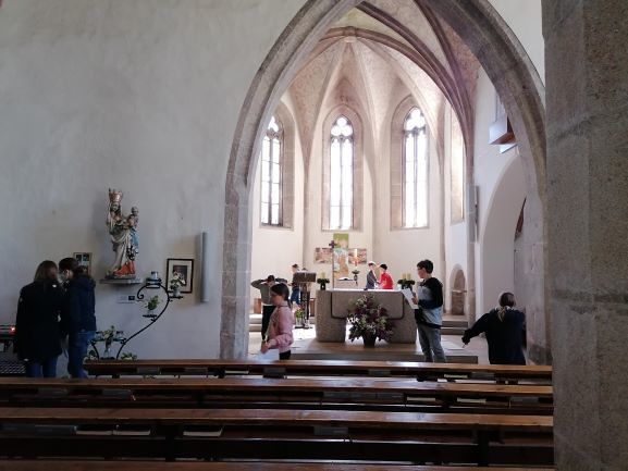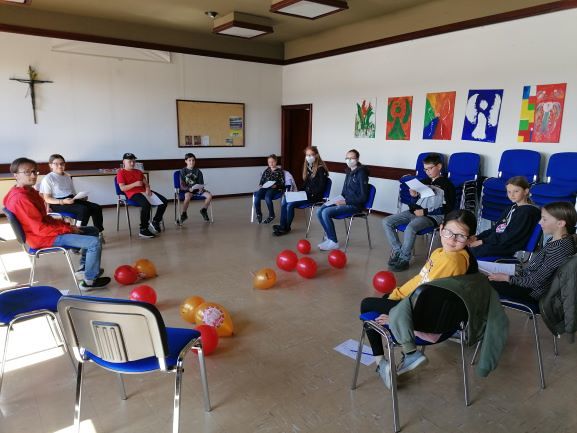Wir trafen uns am Vormittag zu einem Kennenlernen im Pfarrheim. Anschließend gingen wir in die Kirche, um dort eine Kirchenralley zu veranstalten. Dabei mussten die Ministranten kurze Fragen über unsere Pfarrkirche beantworten – die Antworten fanden sie in der Kirche.