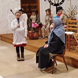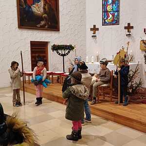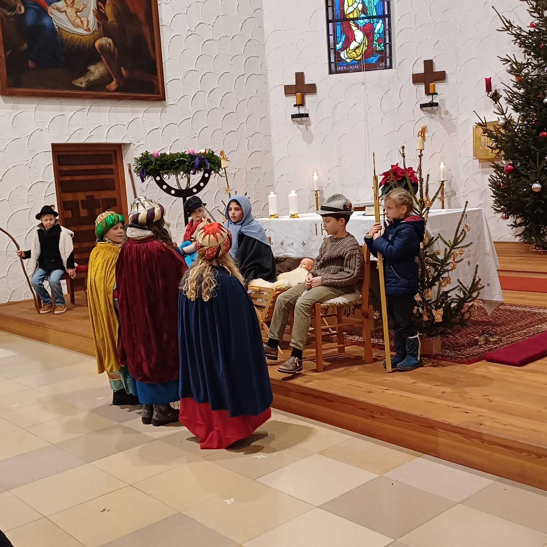 Die Kinder der Volksschule haben mit großer Hingabe das Hirtenspiel dargestellt und uns so den Weg nach Bethlehem neu eröffnet. Mit ihrer Natürlichkeit, ihrem Mut und ihrer Freude haben sie die Weihnachtsbotschaft lebendig werden lassen – einfach, ehrlich und tief berührend.