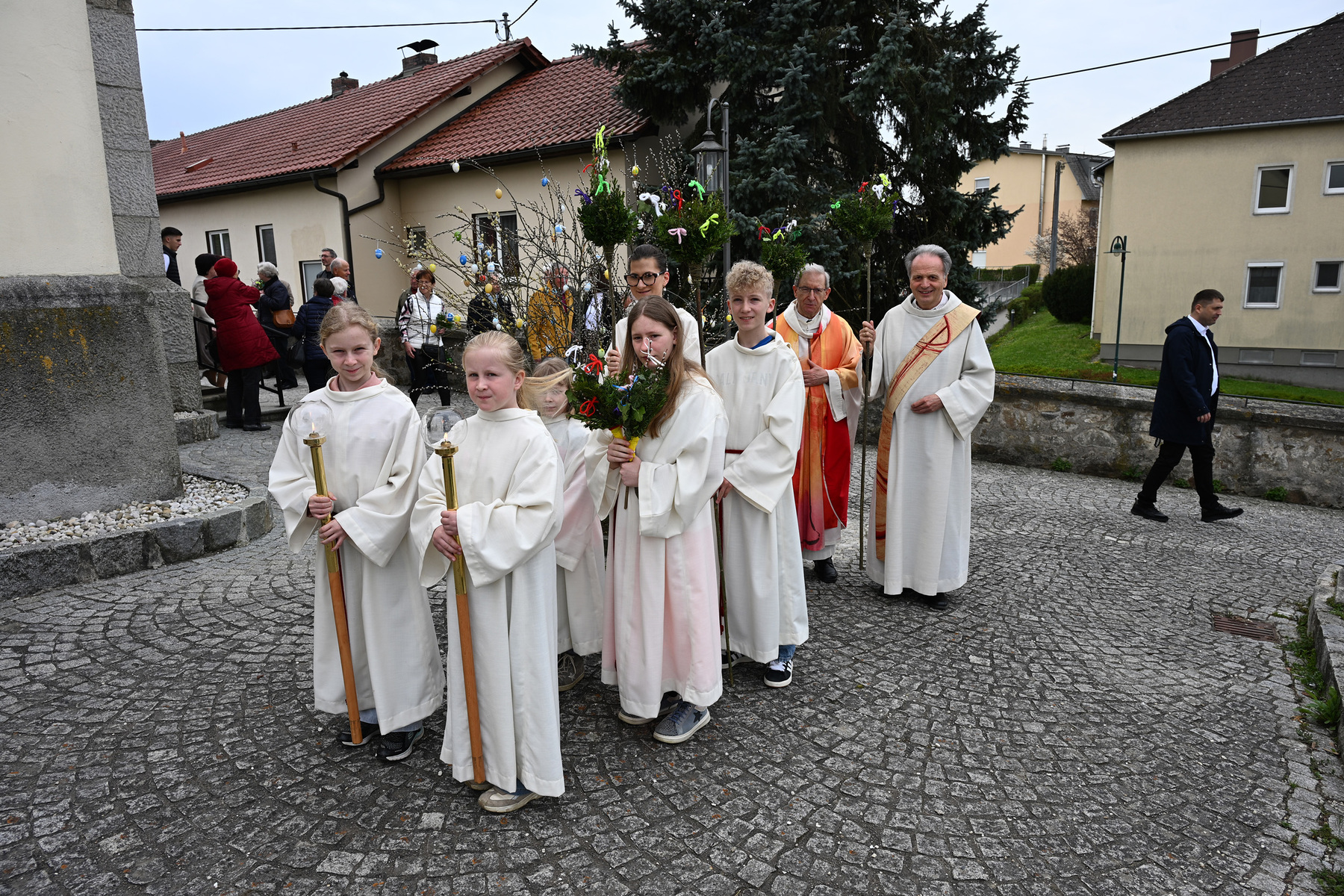 Am Palmsonntag, 12. April 2025, versammelte sich eine große Glaubensgemeinschaft mit ihren Palmbuschen - darunter viele Erstkommunionkinder mit ihren Familien - in der Pfarrkirche Schönering und erwarteten den feierlichen Einzug des liturgisches Teams zum Festgottesdienst am Palmsonntag. Mehrere Familien kamen sogar zu Fuß aus Reith - eine Reither Palmprozession quasi.