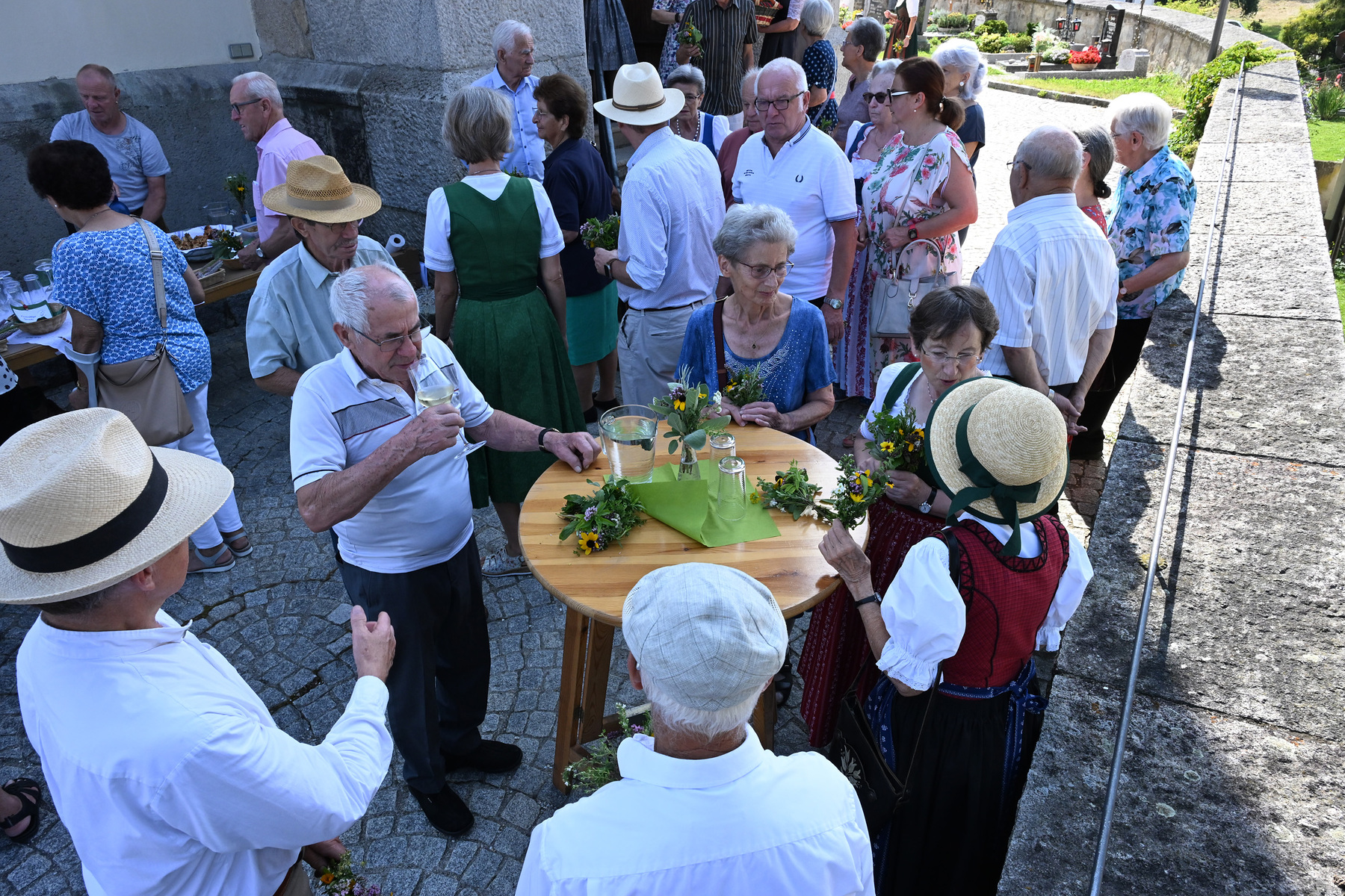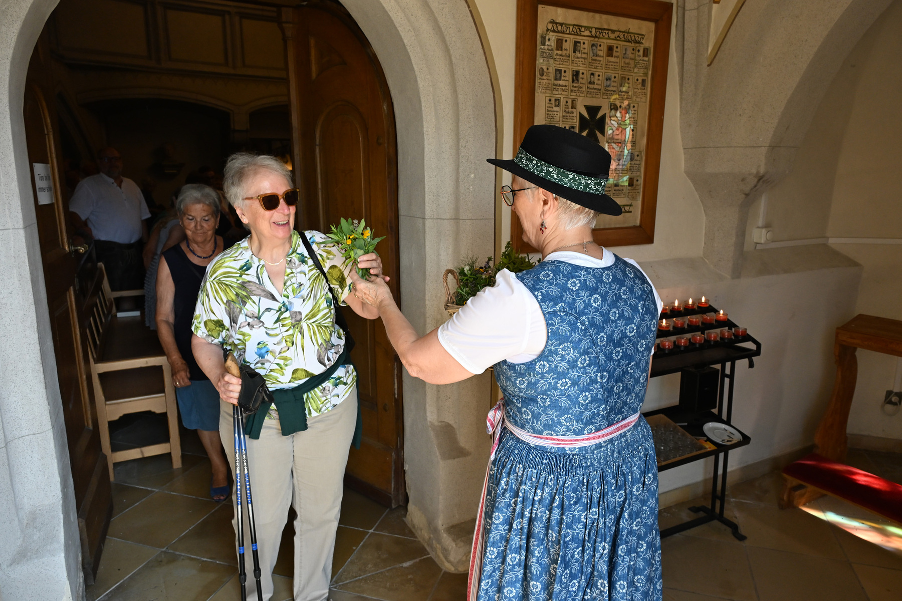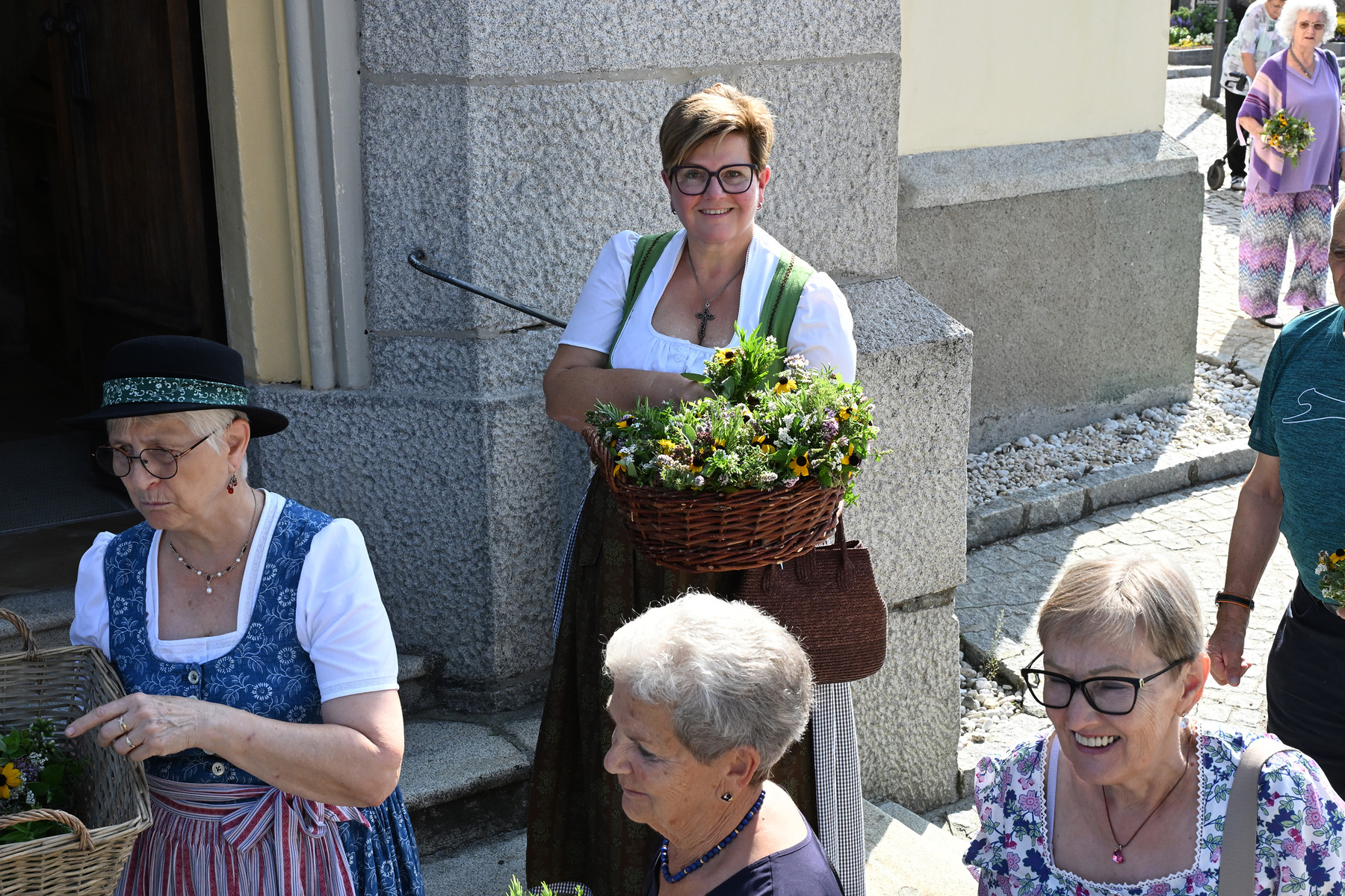 Ebenso ist es jedes Jahr eine Freude, wenn die Goldhaubenfrauen in der schönen Tracht die gesegneten Kräuterbüschel bei den Kirchenausgängen verteilen - sollen die Kräuter doch Segen, Schutz und Gesundheit ins Haus bringen.