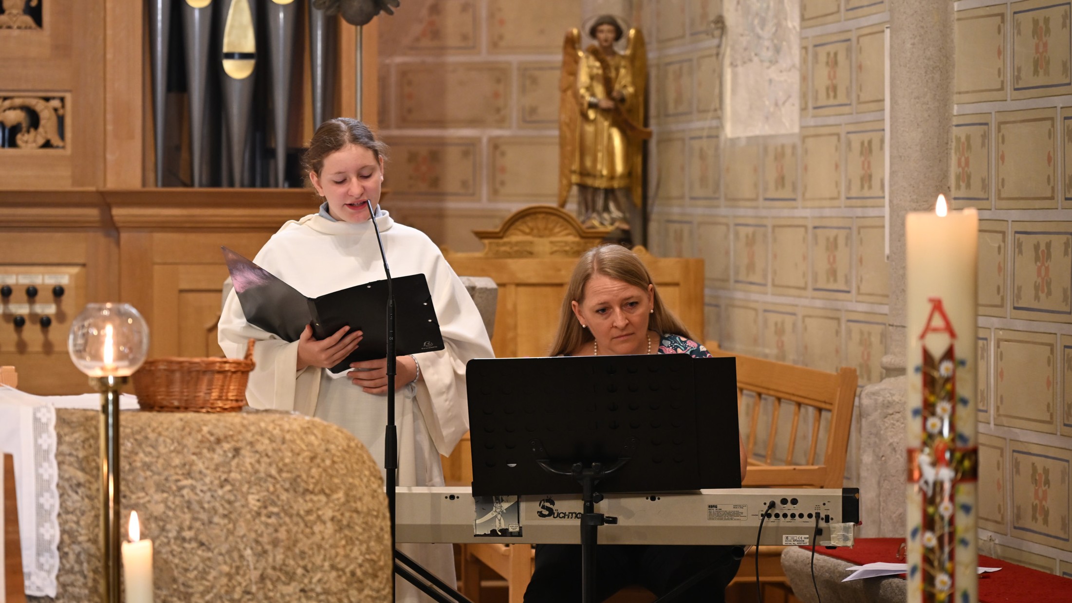 "Sei behütet auf deinen Wegen" - dieses berührende und sehr schön gesungene Segenslied unserer Ministrantin Valentina erfreute die Herzen aller Mitfeiernden. Begleitet wurde Valentina von ihrer Mutter Katharina, die mit ihrer glockenhellen Stimme und ihrem musikalischen Können immer wieder unsere Gottesdienste bereichert.