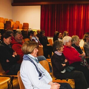 Aloisia Spitzenberger, kfb-Obfrau, stellte Evelyn Mallinger zu Beginn des humorvollen Abends vor, die - neben ihrer Tätigkeit als Bildungsmanagerin im Bildungshaus Sankt Magdalena in Linz - auch Resilienz-, Humor- und Achtsamkeitstrainerin sowie Kinesiologin und Cranio Sacral Therapeutin ist.