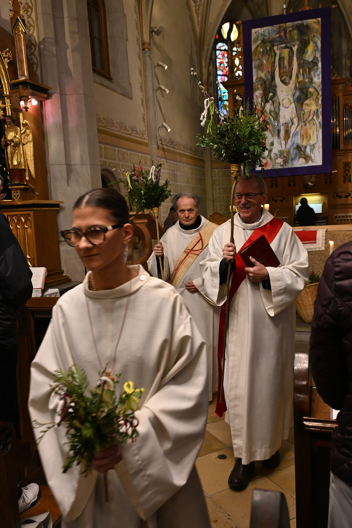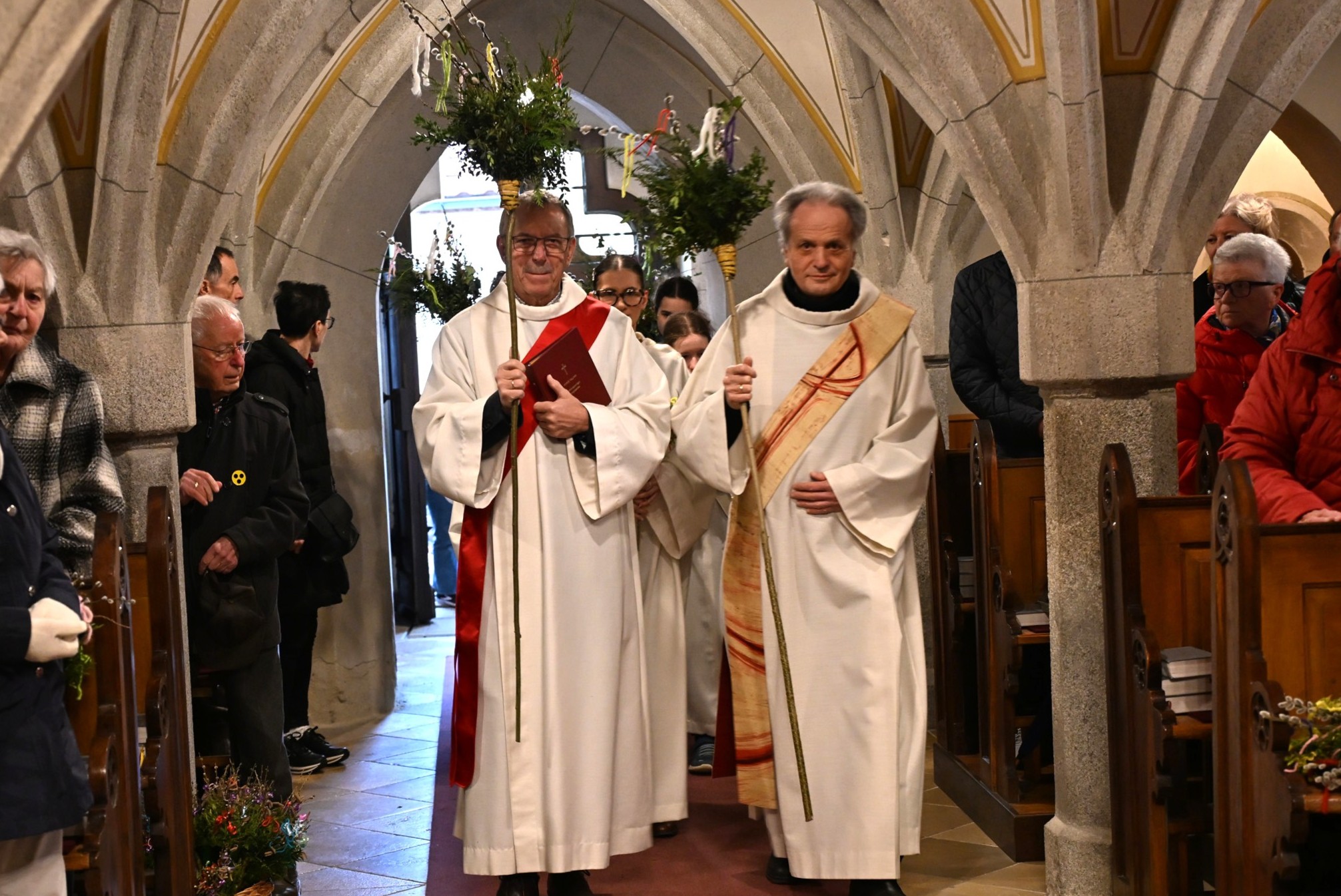 Auch die Minis durften ihren eigenen Palmbuschen binden und damit - gemeinsam mit Pastoralvorstand Wolfgang Froschauer und Diakon Johann Hagn - am Palmsonntag in die Pfarrkirche einziehen.