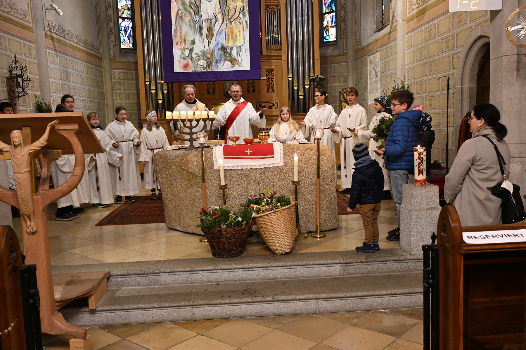Neben dem Singen des Vater Unser, gemeinsam mit Kindern im Altarraum, spendeten Wolfgang Froschauer und Hans Hagn am Ende des Gottesdienstes den Segen. Wolfgang sprach seinen Dank für das Mitfeiern aus, womit auch ein sehr wertvolles Stückchen christliche Kultur, die unser Leben so sehr prägt, hoch- und in Ehren gehalten wird.