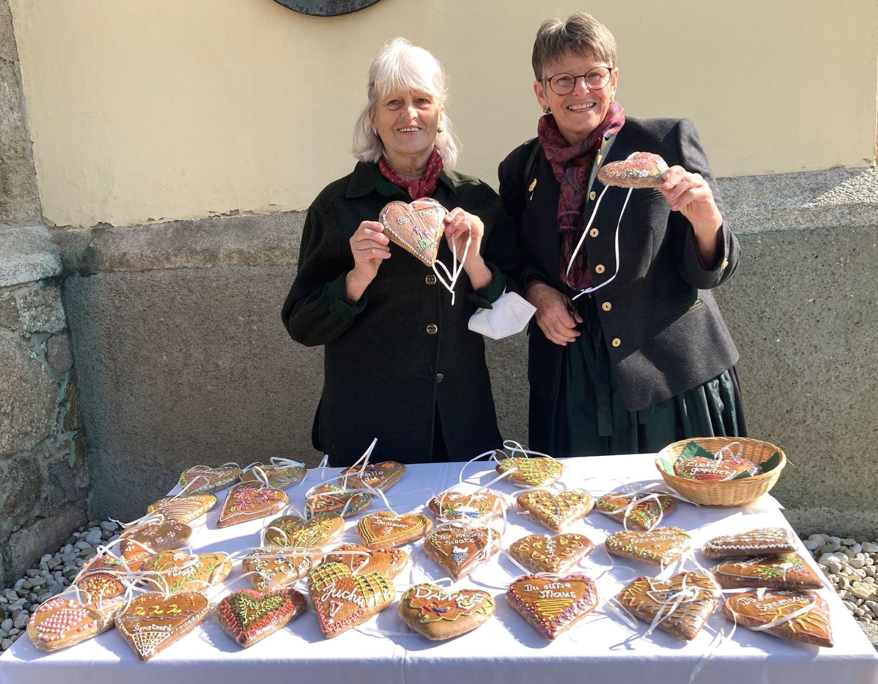 Sehr begehrt waren anschließend die prachtvollen Lebkuchenherzen, die bei den Kirchenausgängen zum Verkauf angeboten wurden. Vom Verkaufserlös werden die Goldhaubenfrauen die Osterkerze mitfinanzieren.
