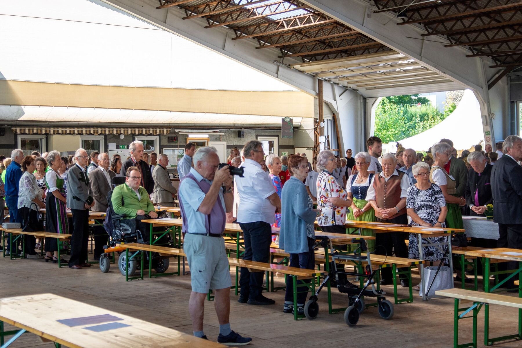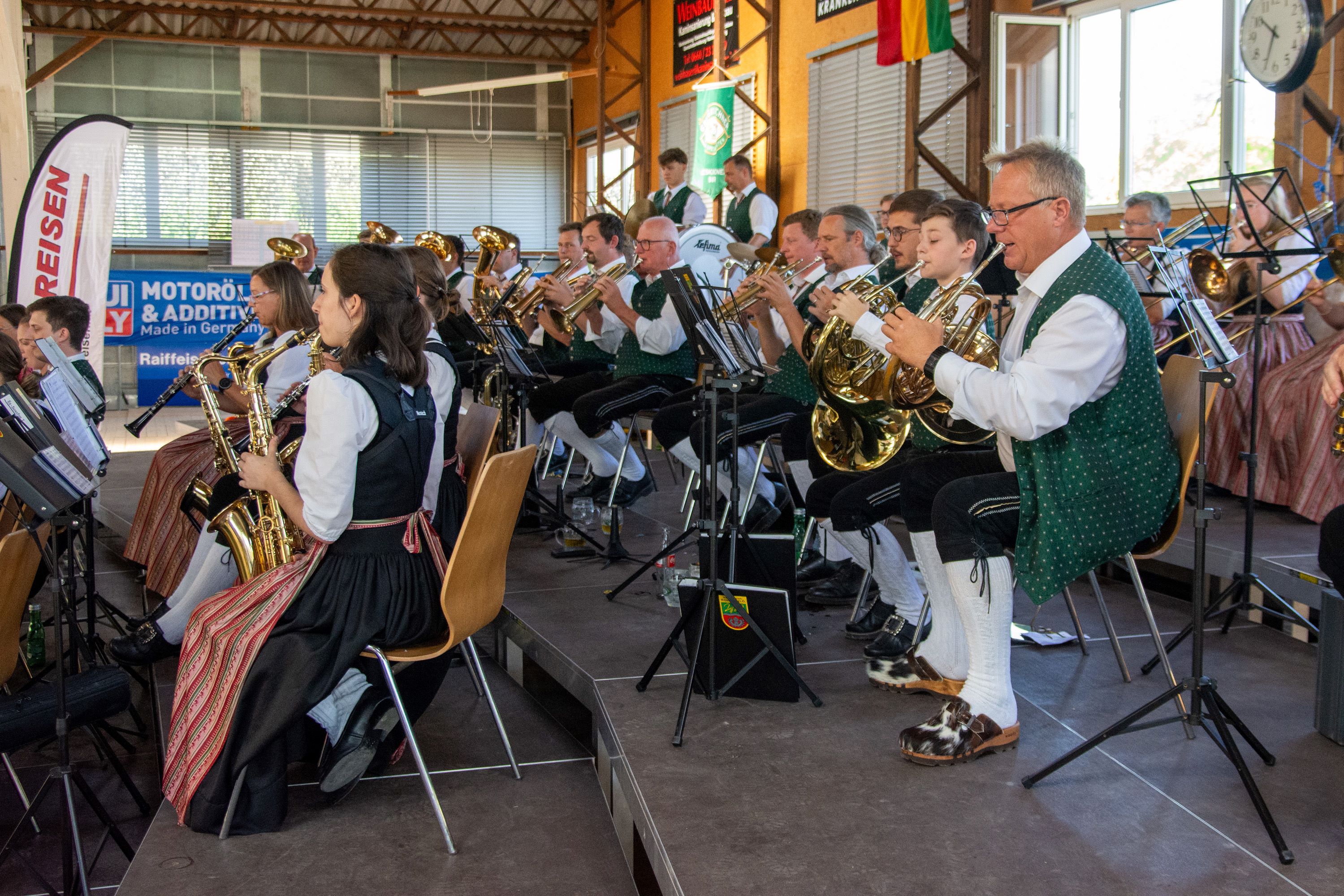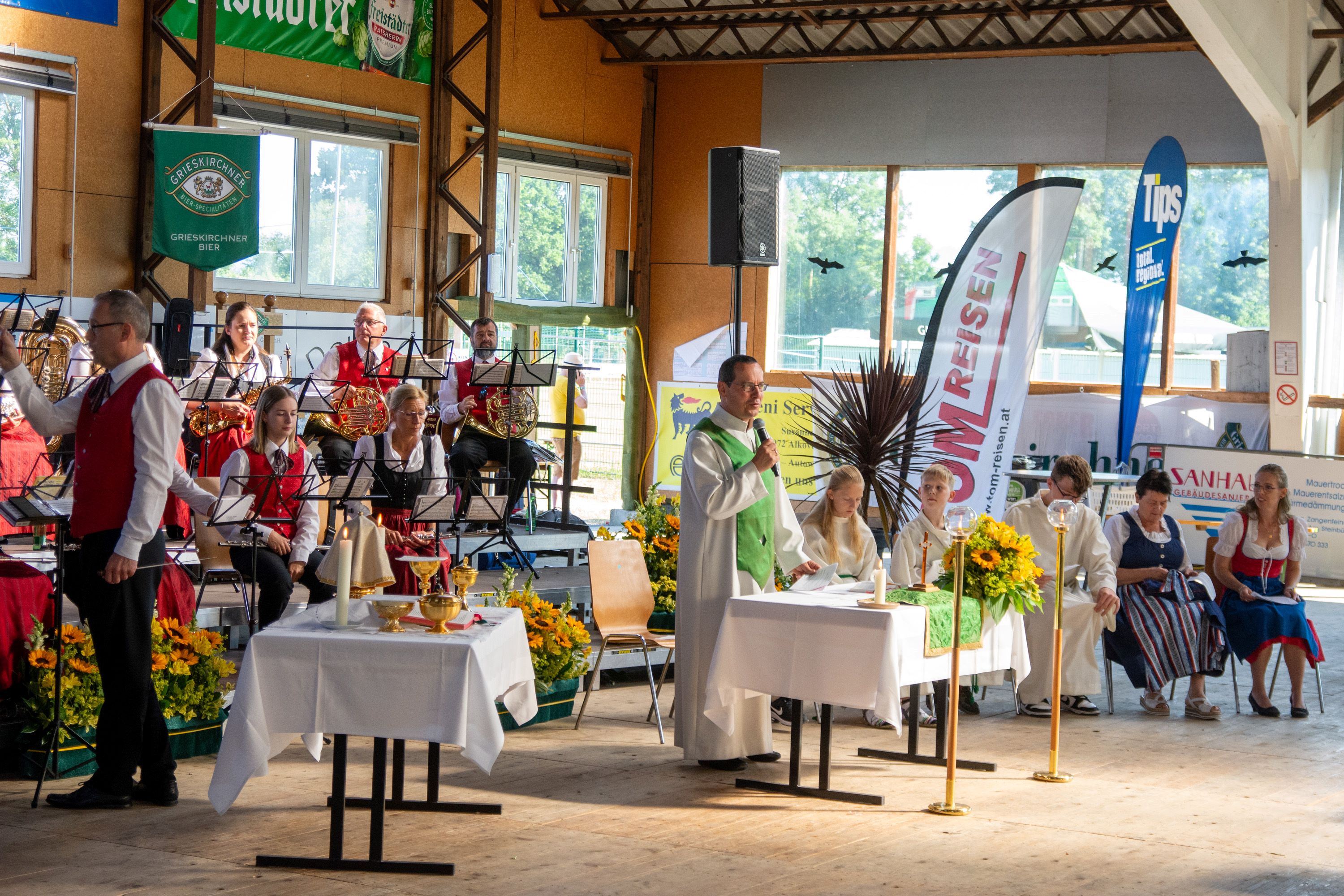 Nach dem Einzug in die festlich geschmückte Stockschützenhalle wurde gemeinsam der Festgottesdienst gefeiert, musikalisch sehr würdevoll umrahmt vom Musikverein Schönering.