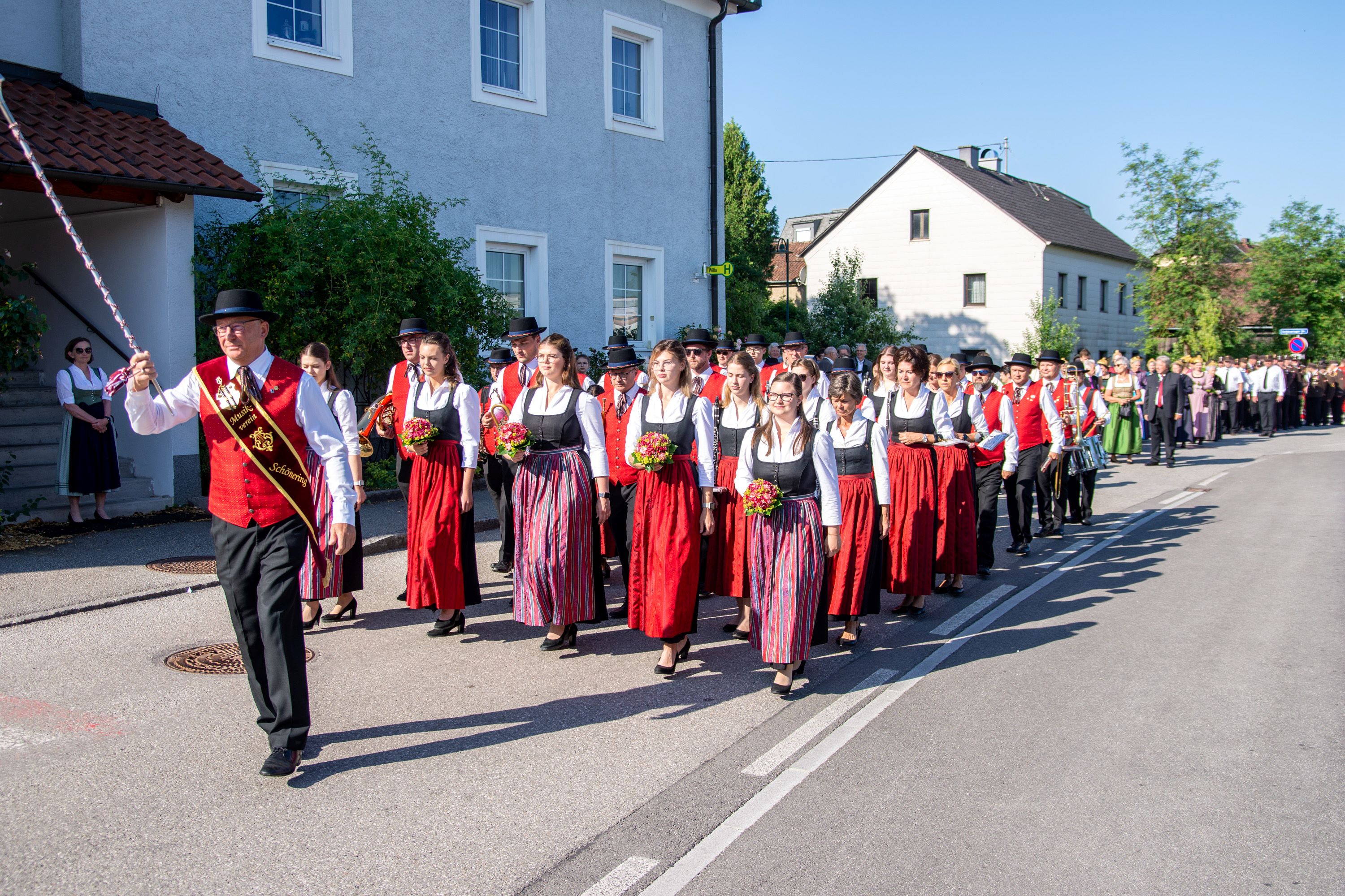 Der Aufmarsch der unterschiedlichen Gruppierungen und Vereine der Marktgemeinde Wilhering - von den beiden Musikvereinen bis hin zu den Sportvereinen, den Feuerwehren, den Vertreter*innen aus der Politik und Kultur, den Goldhaubenfrauen und dem liturgischen Personal unserer Pfarrgemeinde Schönering - ist immer wieder ein sehr schönes, berührendes und verbindendes Zeichen.