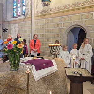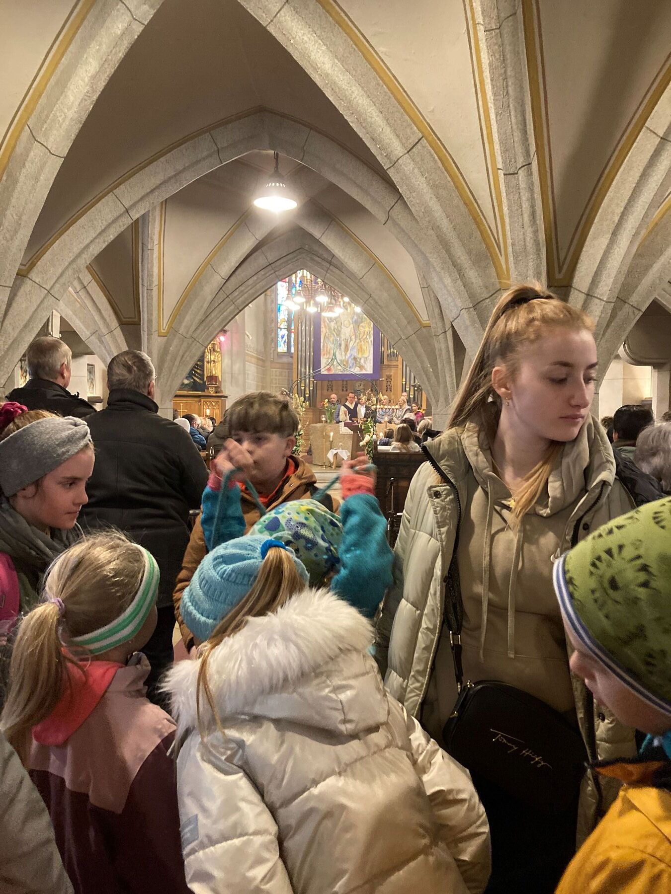 Alle Kinder und Jungscharkinder waren beim Abschlusssegen voll in “action” rund um den Altar dabei. Beim sogenannten Mitmachsegen baten wir um Gottes Segen, speziell auch für den anschließenden Jungscharausflug ins Jump Dome - damit alle Knochen heil blieben!