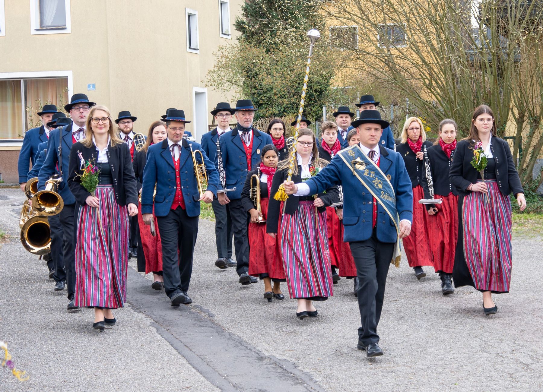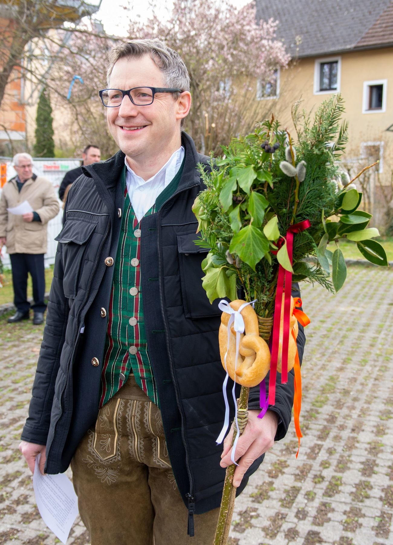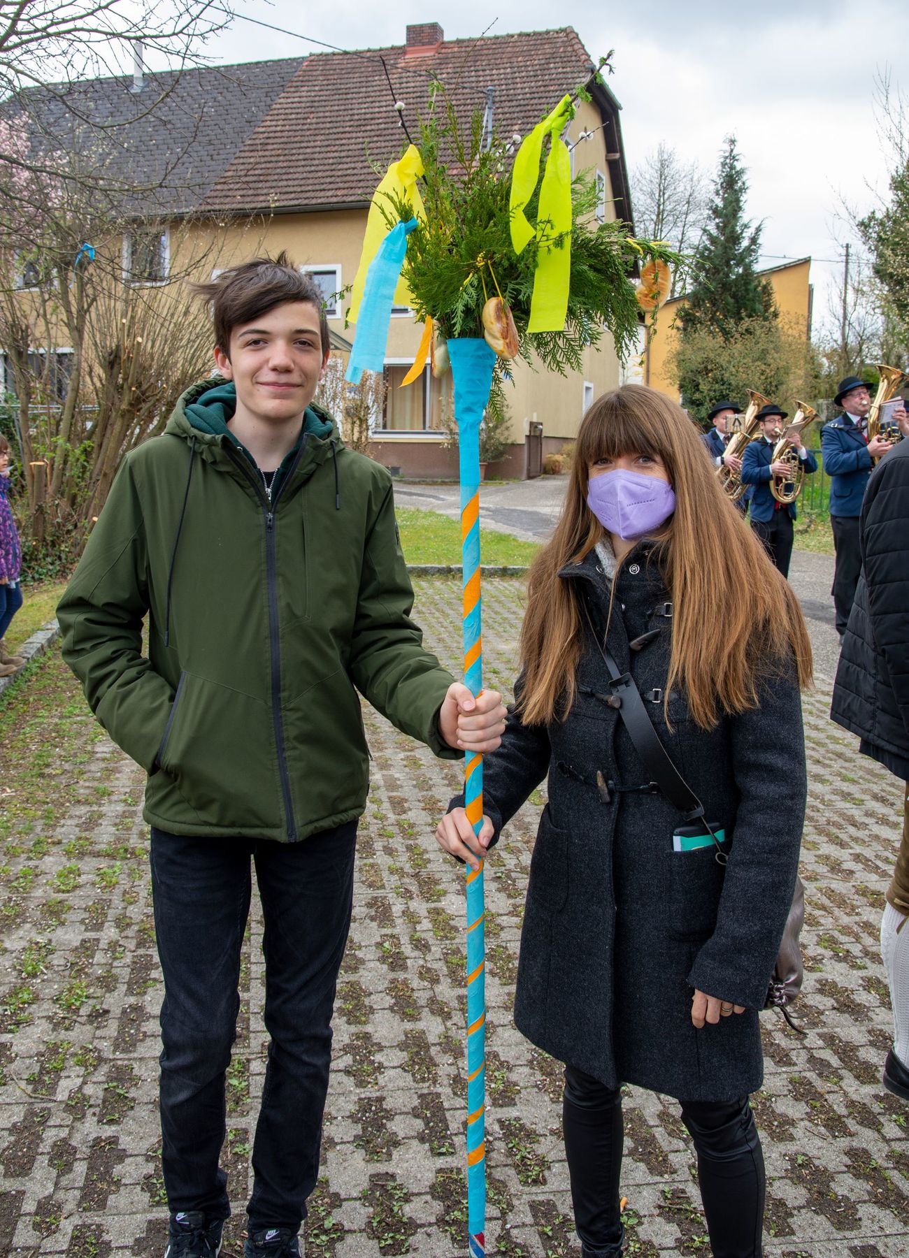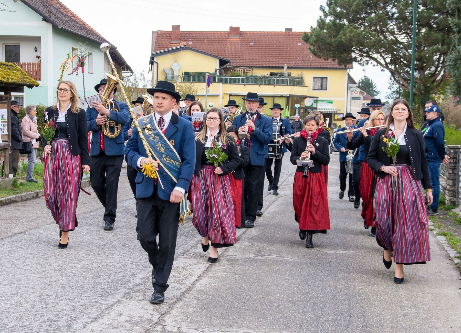 Eine Vielfalt an nach heimatlicher Tradition gebundener Palmbuschen und -stangen schmückten am 10. April 2022 die schöne Feier des Palmsonntags am Pfarrplatz und in der Pfarrkirche Schönering.