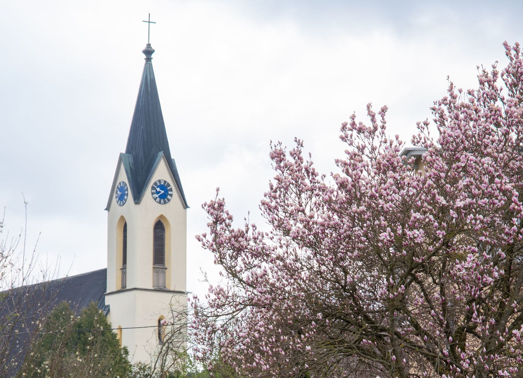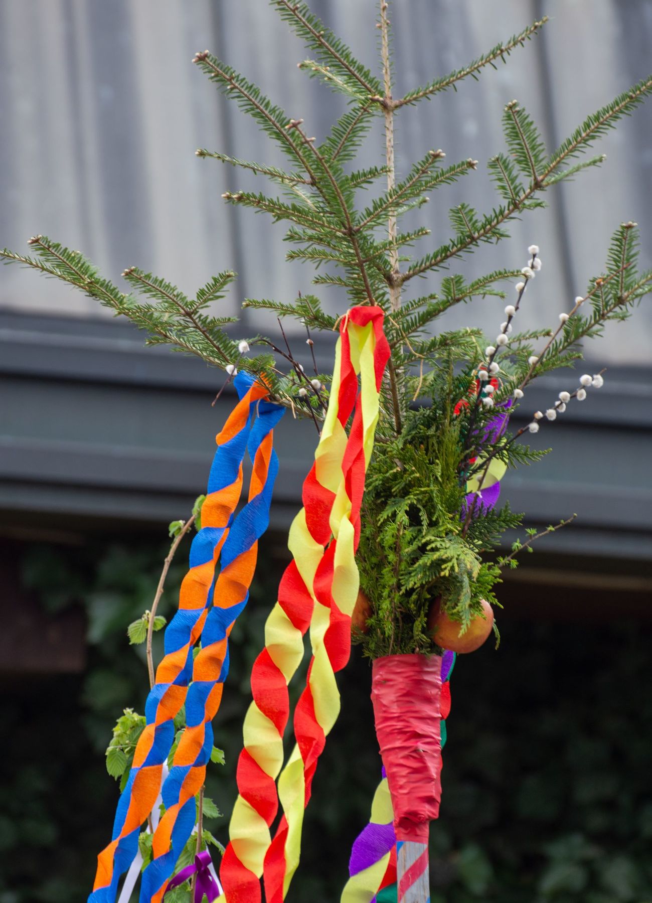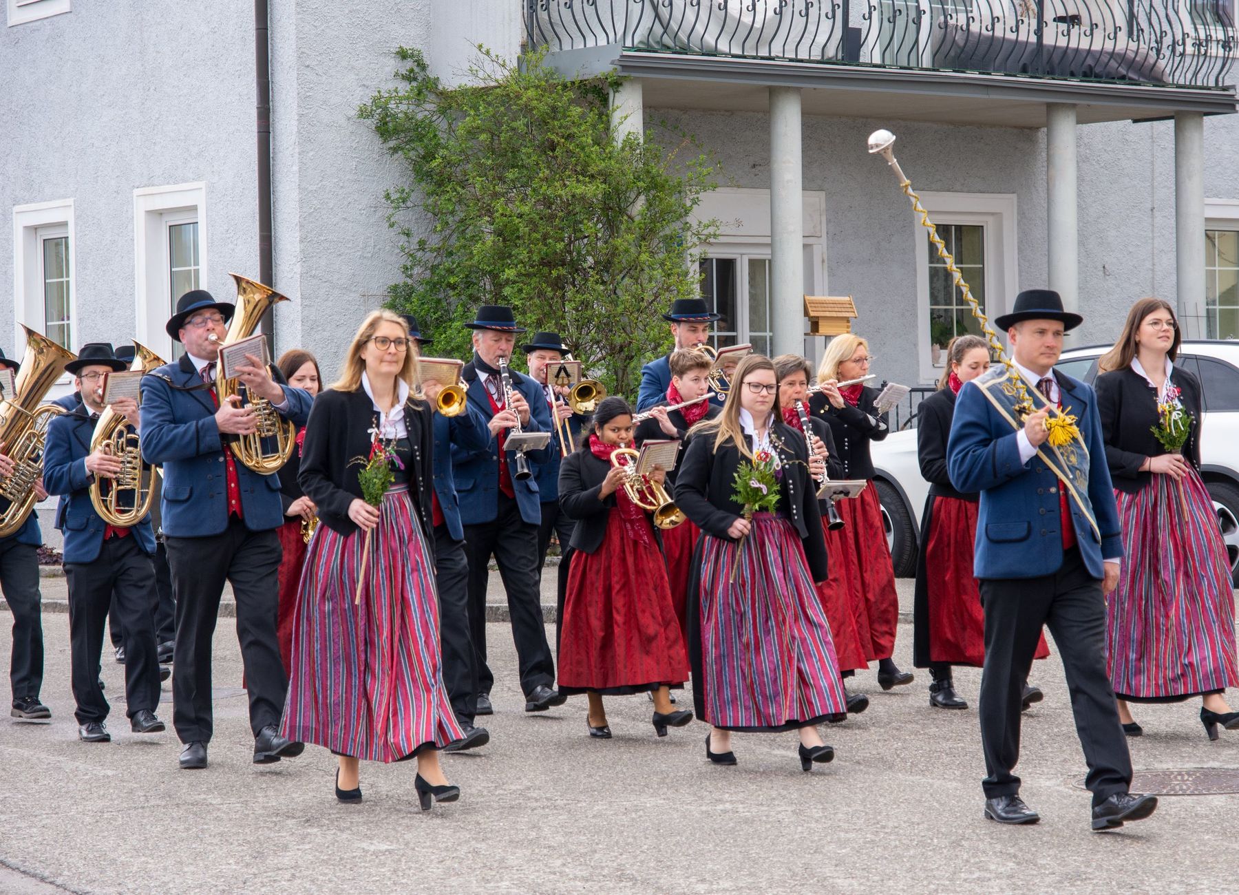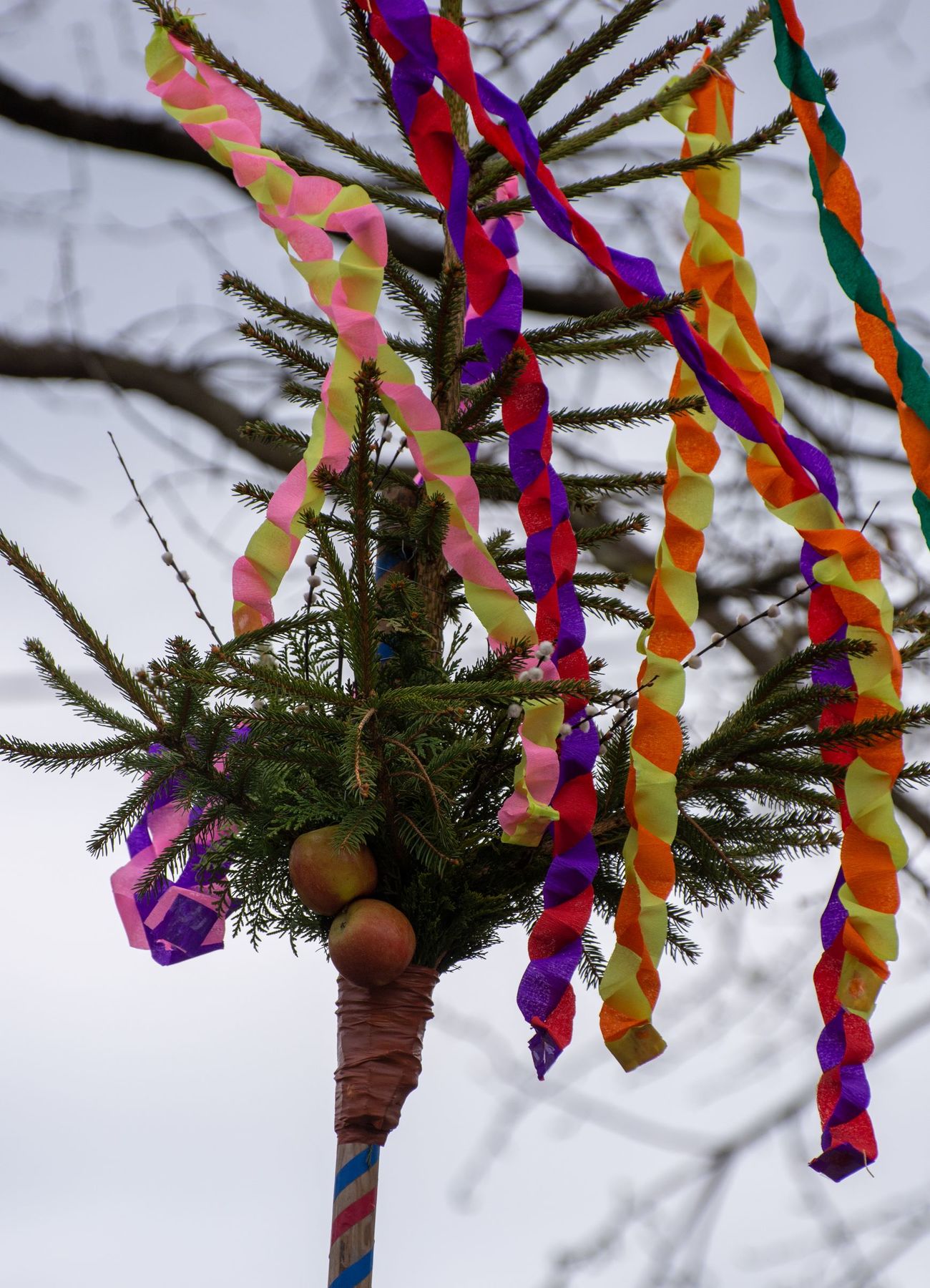 Eine Vielfalt an nach heimatlicher Tradition gebundener Palmbuschen und -stangen schmückten am 10. April 2022 die schöne Feier des Palmsonntags am Pfarrplatz und in der Pfarrkirche Schönering.