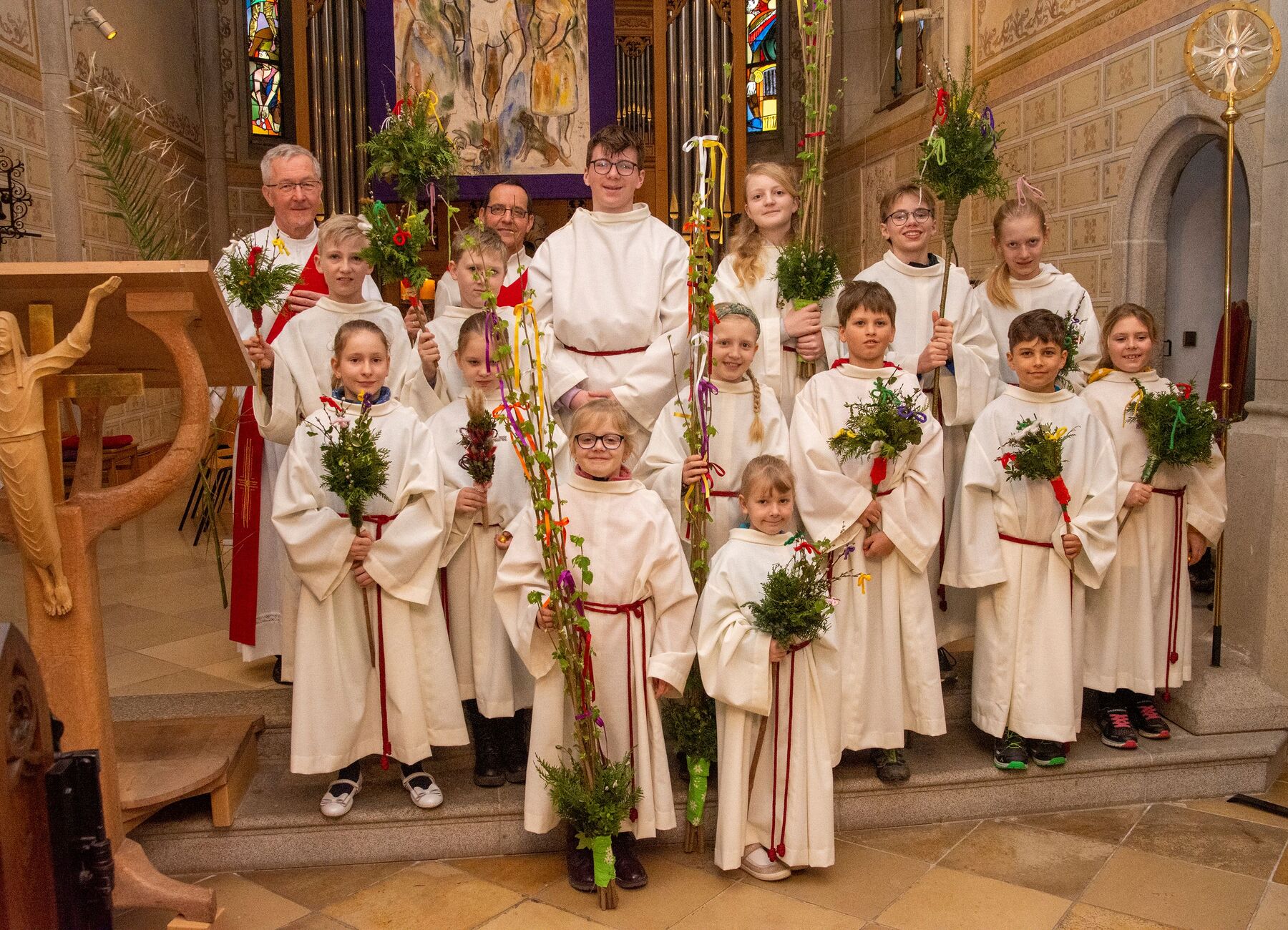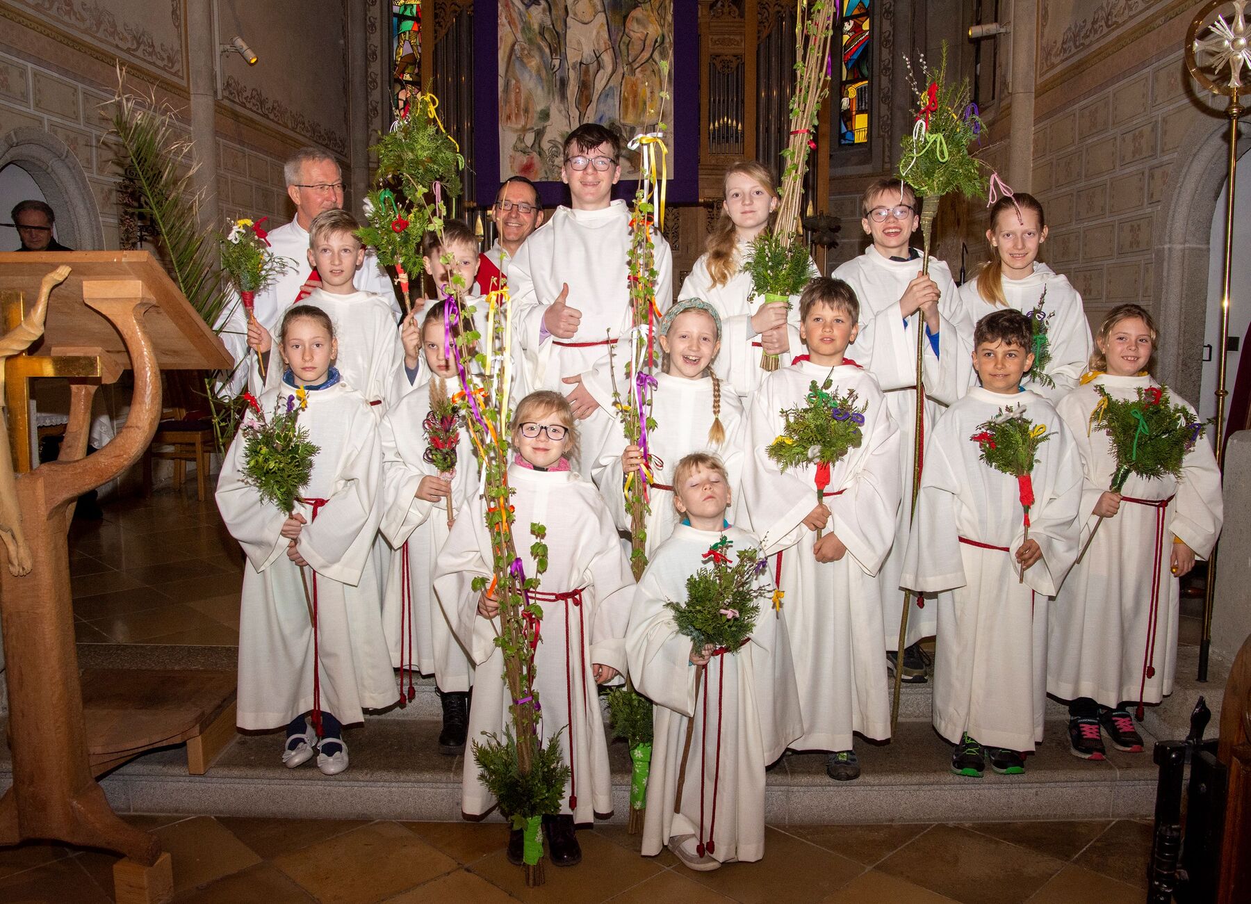 Schöne Feier des Palmsonntags am 2. April 2023 - gemeinsam mit vielen Minis und Erstkommunionkindern.