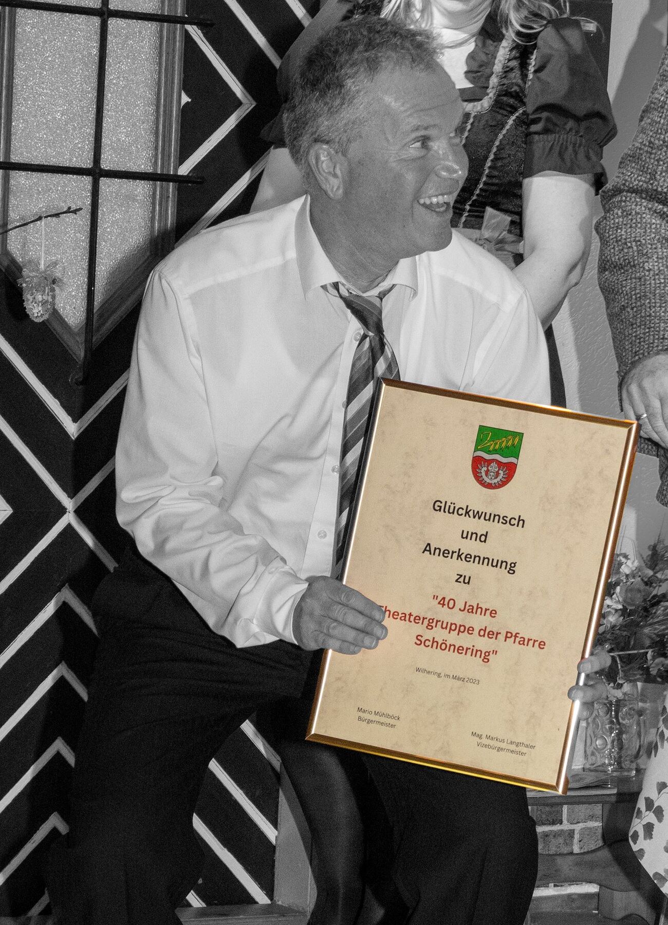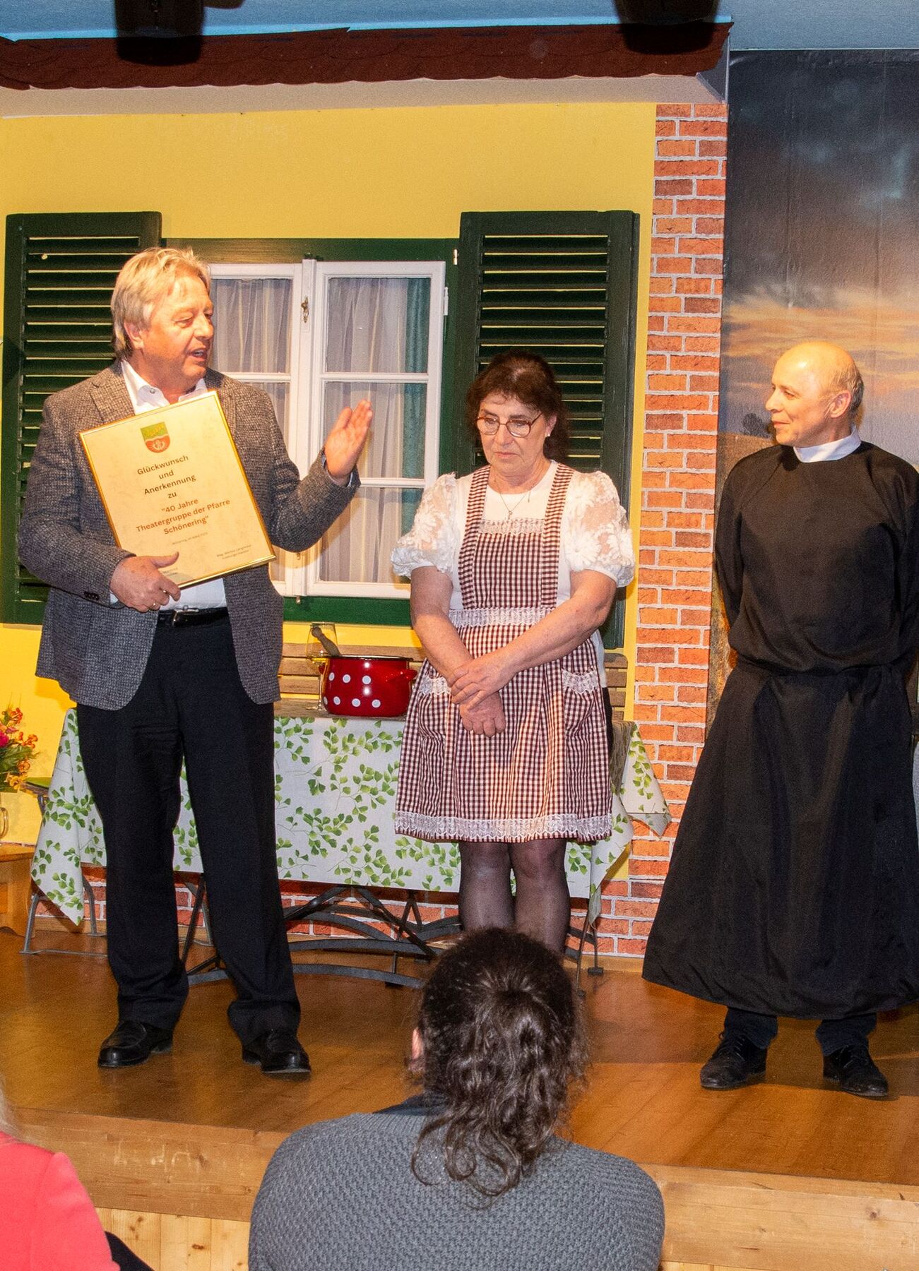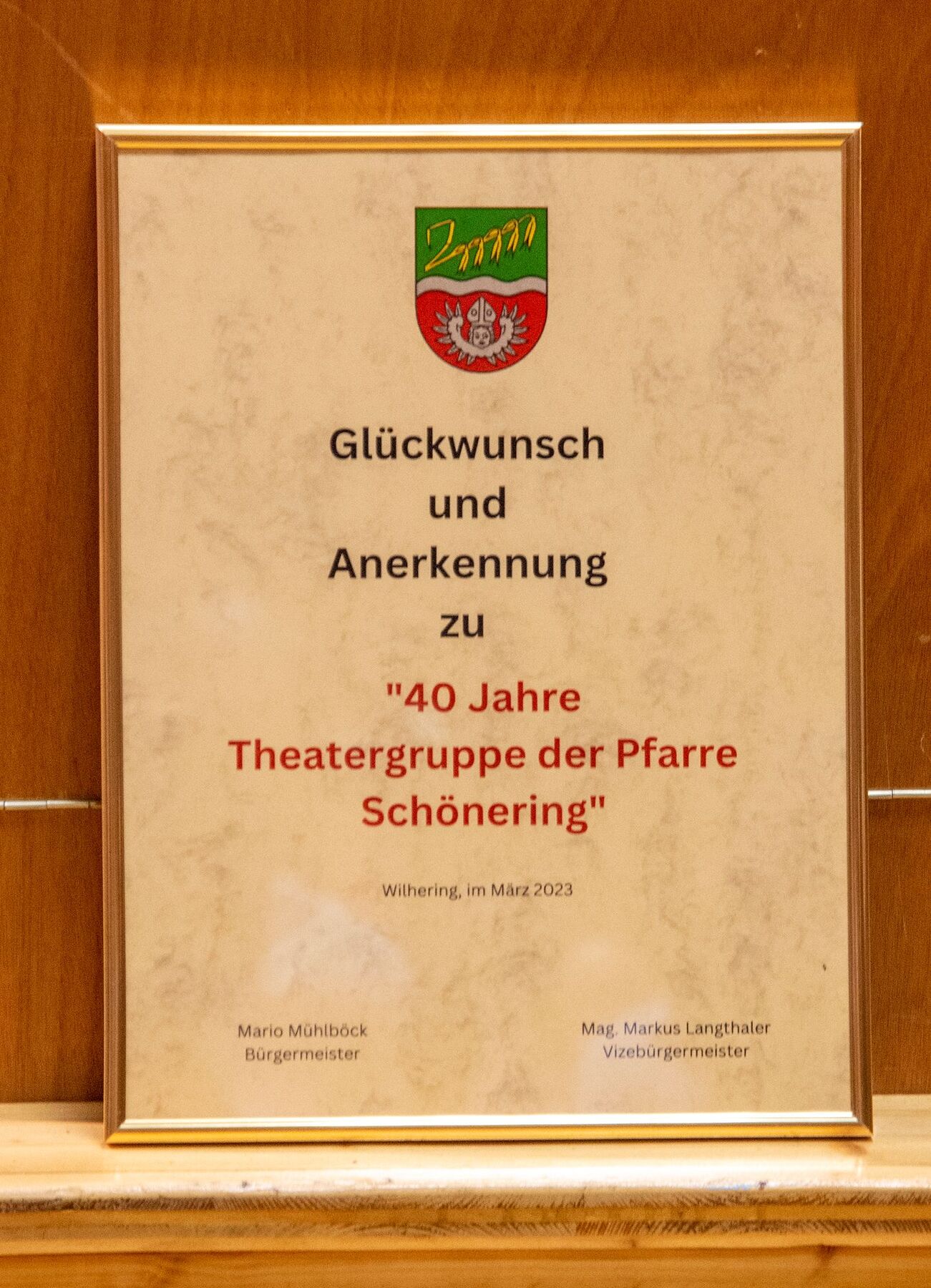 Fotos vom Theaterstücks "Wunder, Zoff und Zunder und der Ehrung durch die Marktgemeinde Wilhering.