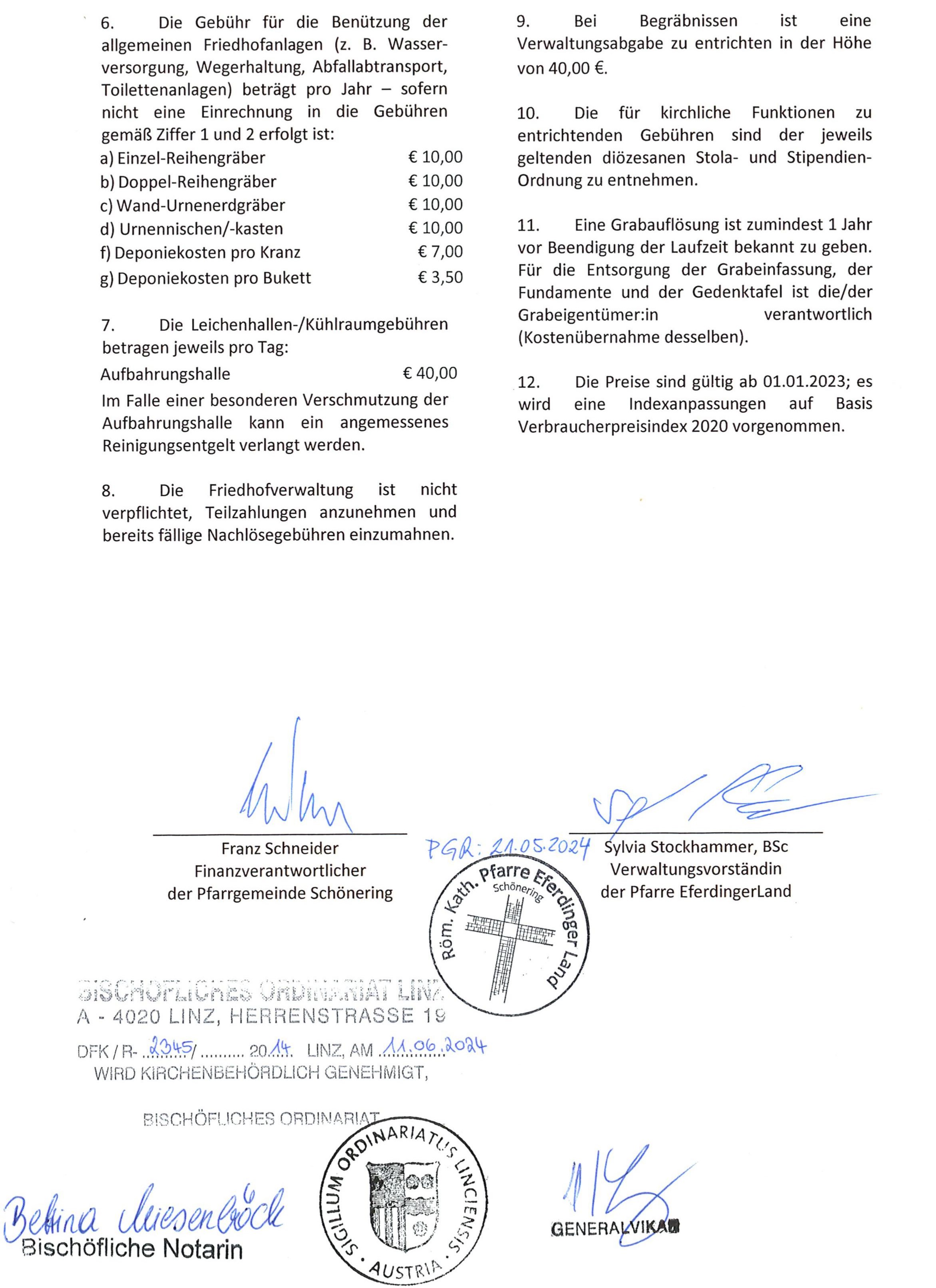 Hier können Sie den für unsere Pfarrgemeinde maßgeblichen Anhang zur Friedhofsordnung und die diözesane Friedhofsordnung nachlesen bzw. als pdf-Datei downloaden.