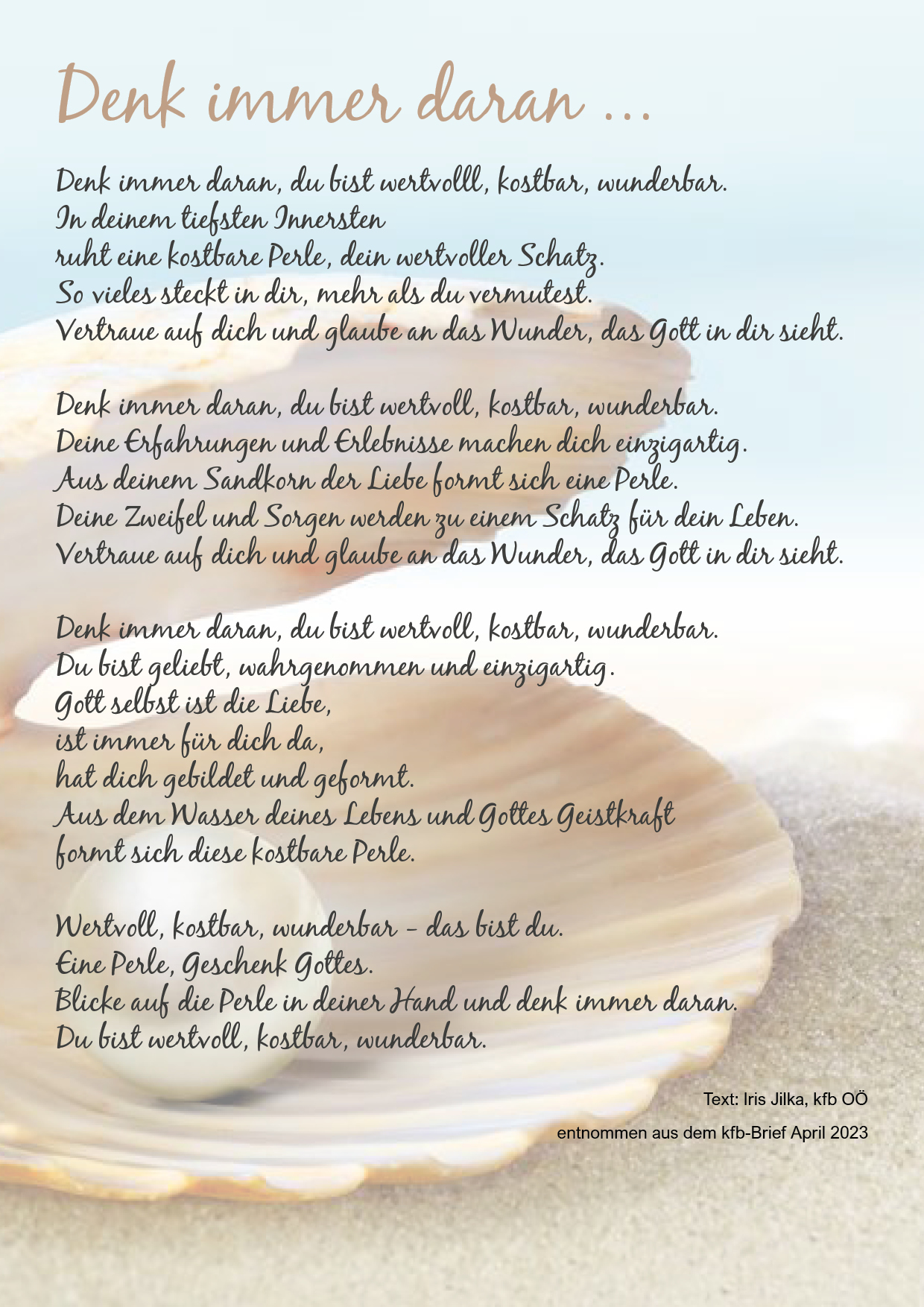 Nicht nur der von Kurat Dr. Anton-Joseph Ilk vorgetragene Brief einer Mutter an ihre Kinder, sondern auch die schöne musikalische Gestaltung und der abschließende Text "Denk immer daran" verliehen dem Muttertagsgottesdienst eine besondere Note.