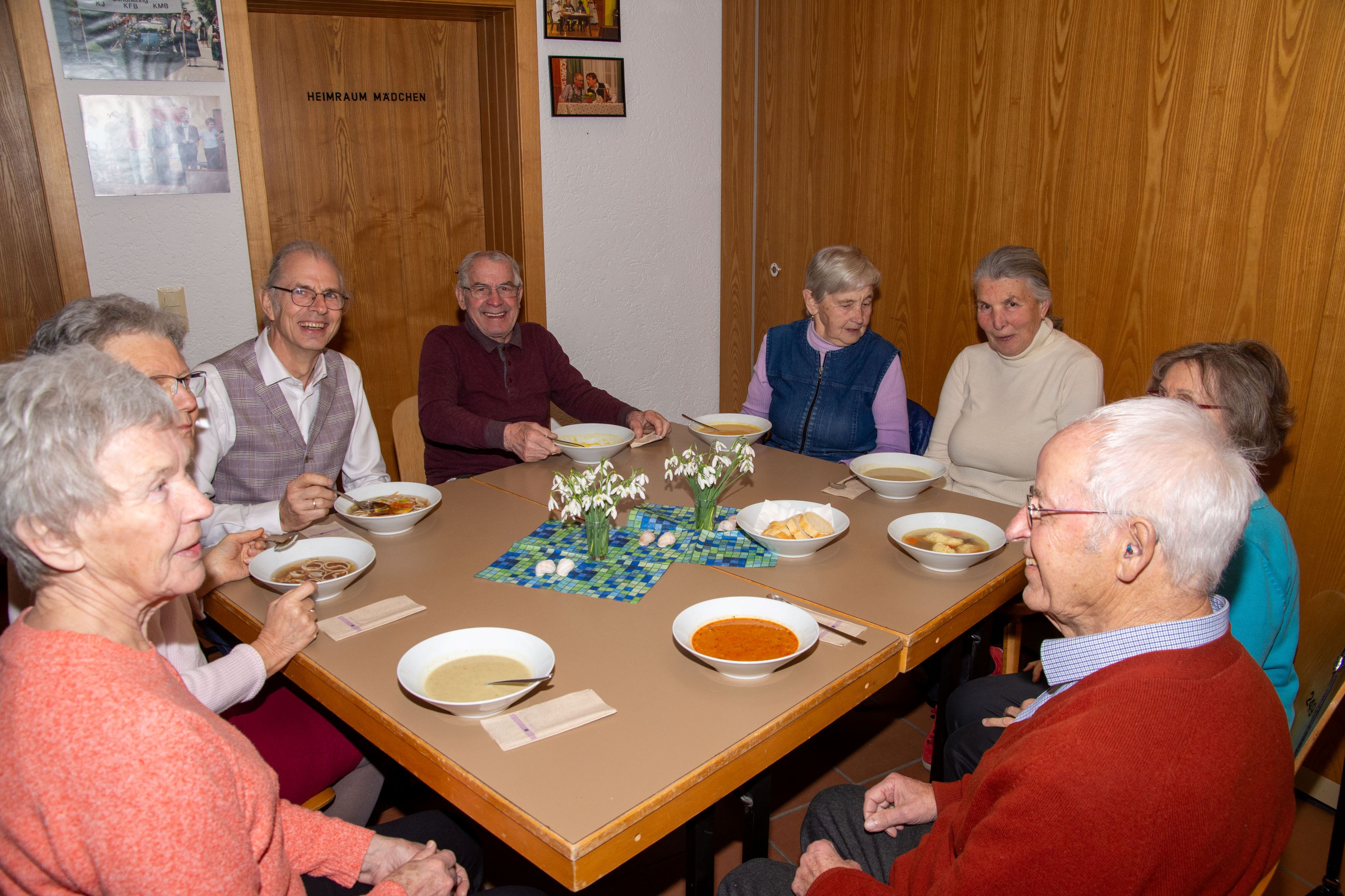 Das anschließende Suppenessen im Pfarrheim - übrigens, das erste Mal wieder nach der mehrjährigen coronabedingten Pause - war ein voller Erfolg! Viele Männer, Frauen und Kinder kosteten sich durch die elf verschiedenen schmackhaften Suppen. Auch "Suppe to go" wurde angeboten.