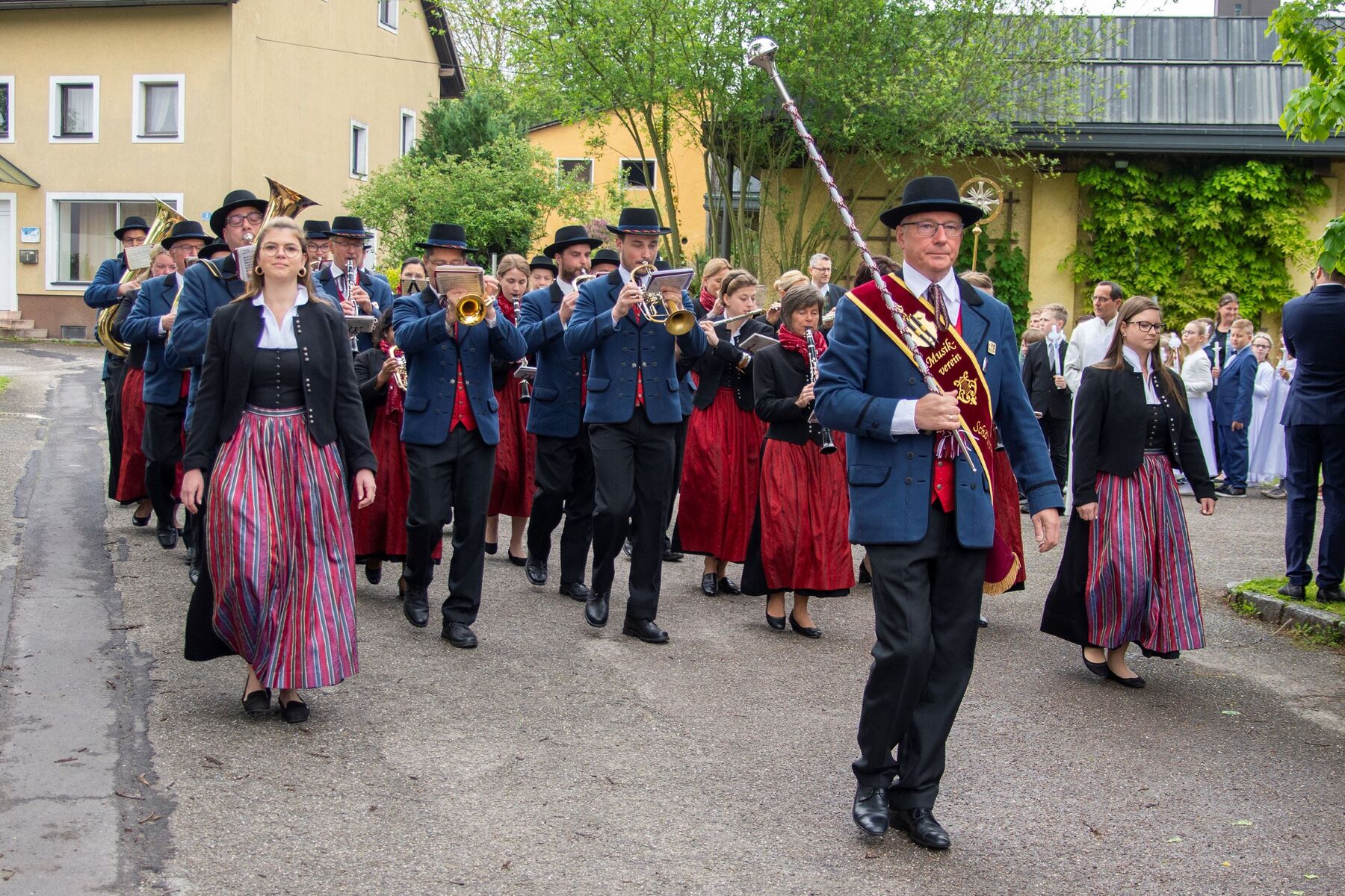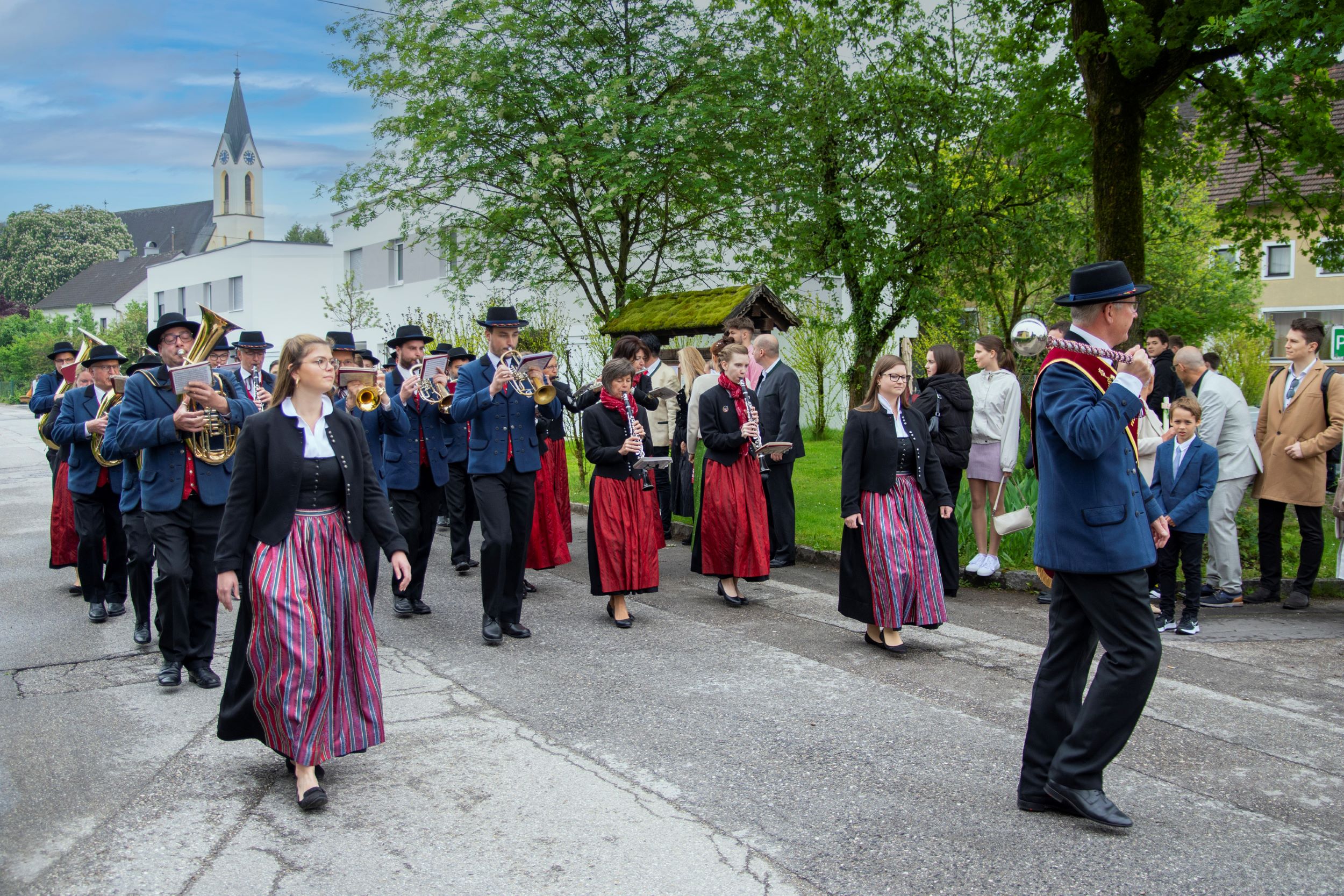 Der gemeinsame Einzug vom Pfarrheim zur Kirche wurde musikalisch vom Musikverein Schönering festlich umrahmt. Gottlob war uns das Wetter wohlgesonnen!
