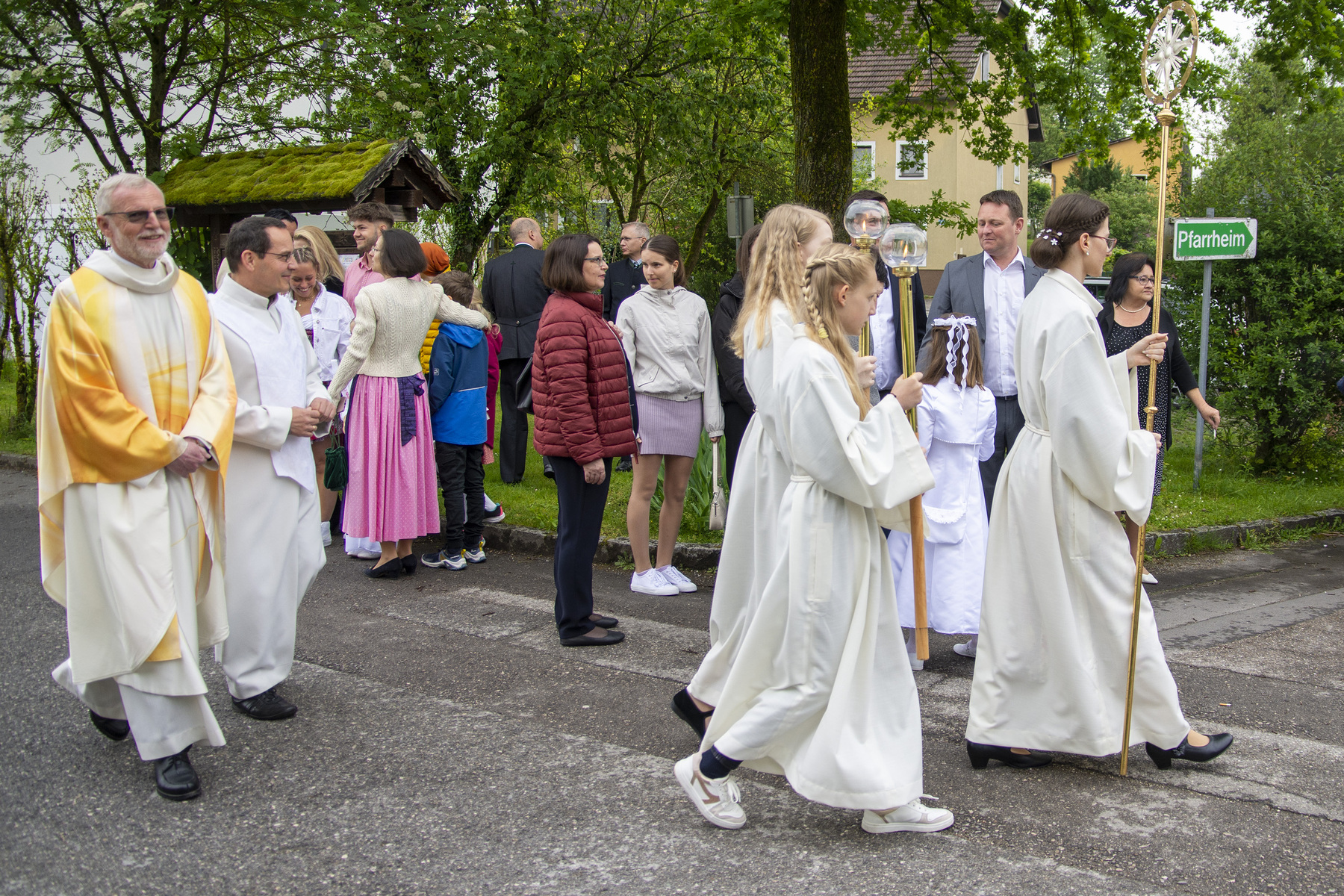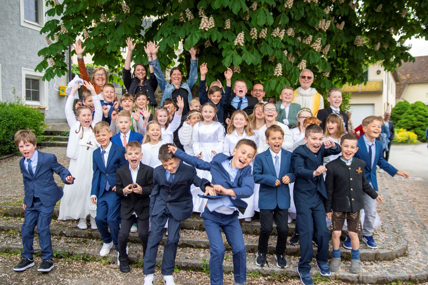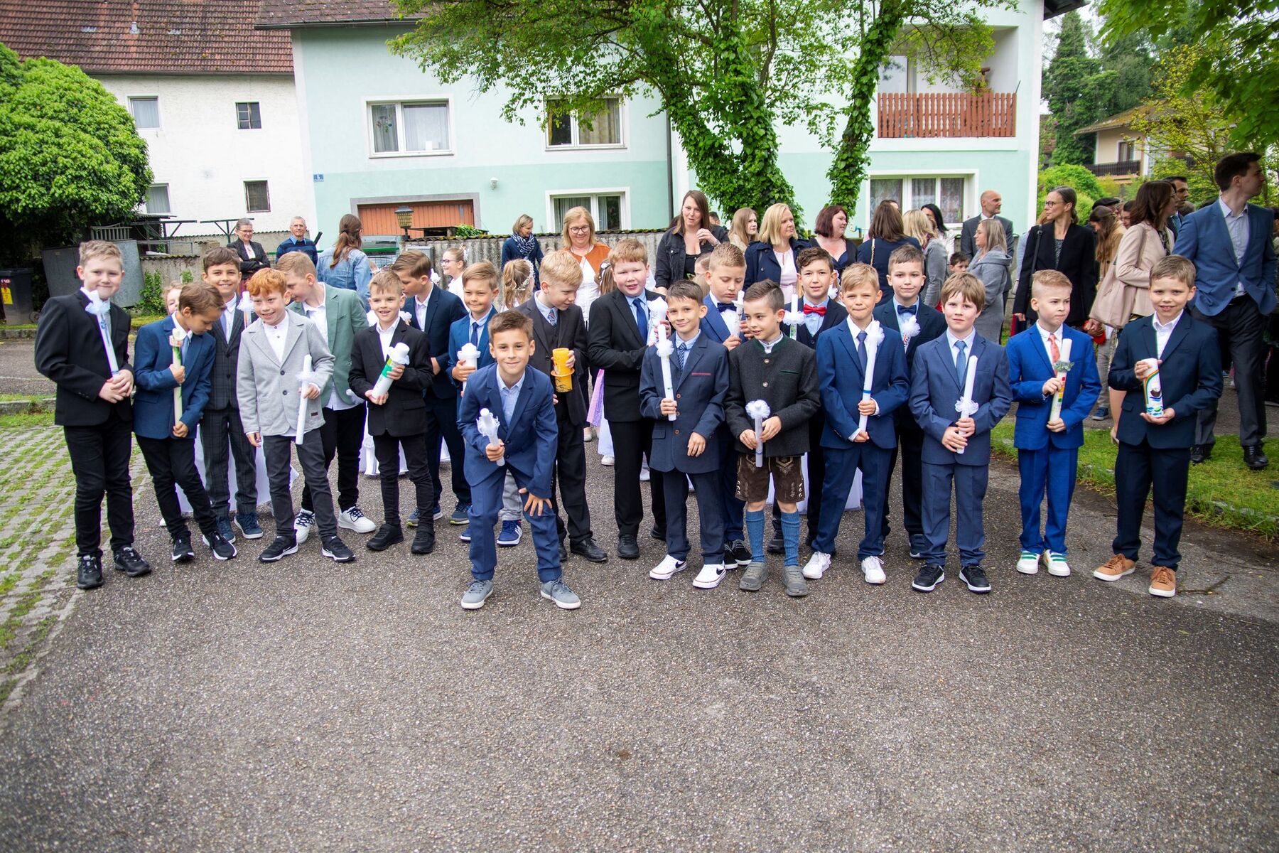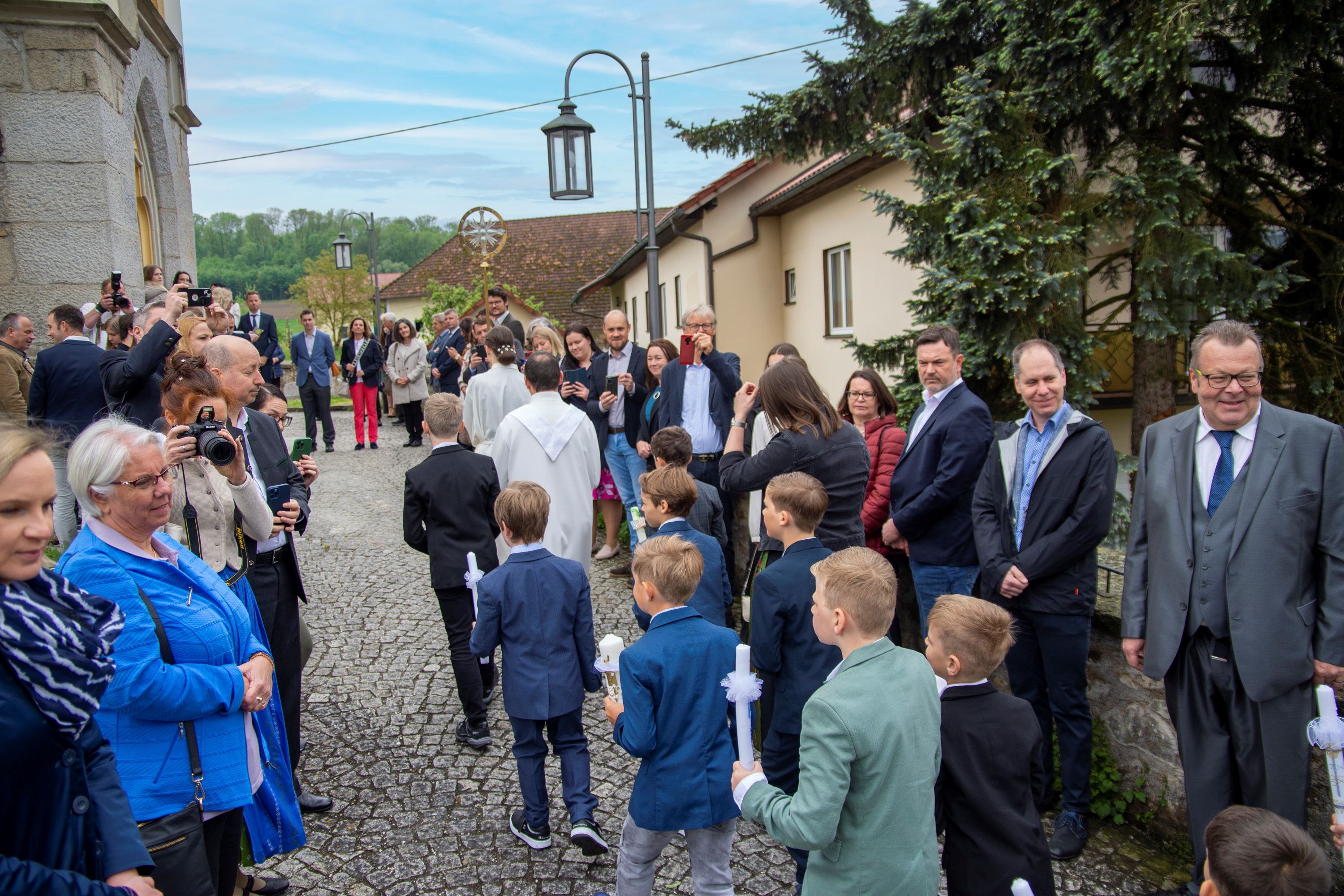 Nach dem festlichen Auszug wurden noch von unserem Fotografen Wilfried richtig tolle Fotos unserer Erstkommunionkinder und deren Familien gemacht. Angehörige, Verwandte und Freunde konnten sich zwischenzeitlich bei einer kleinen, aber sehr feinen Agape am Dorfplatz stärken, um schließlich zu den privaten Feierlichkeiten aufzubrechen.