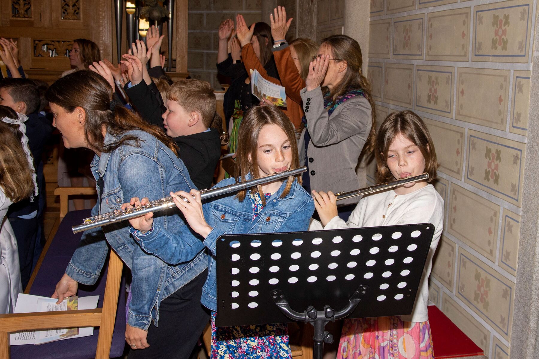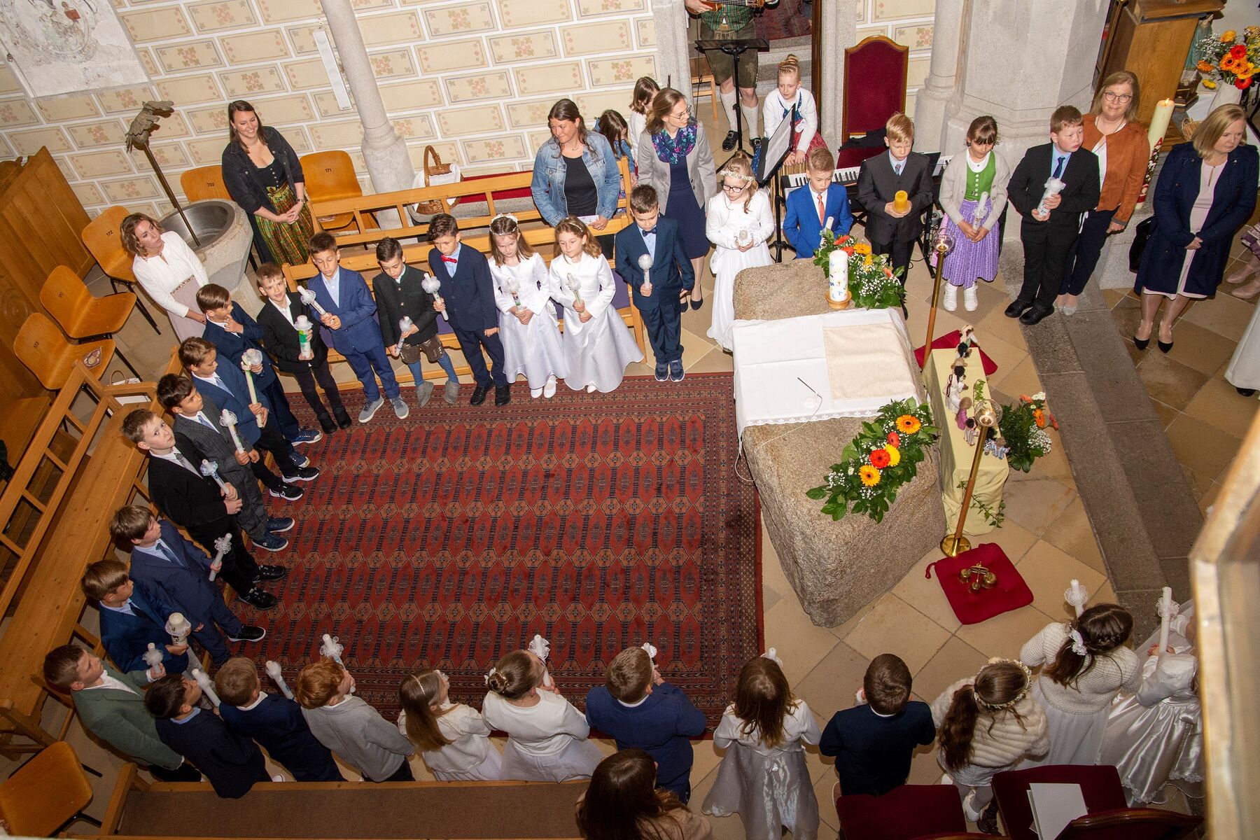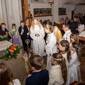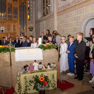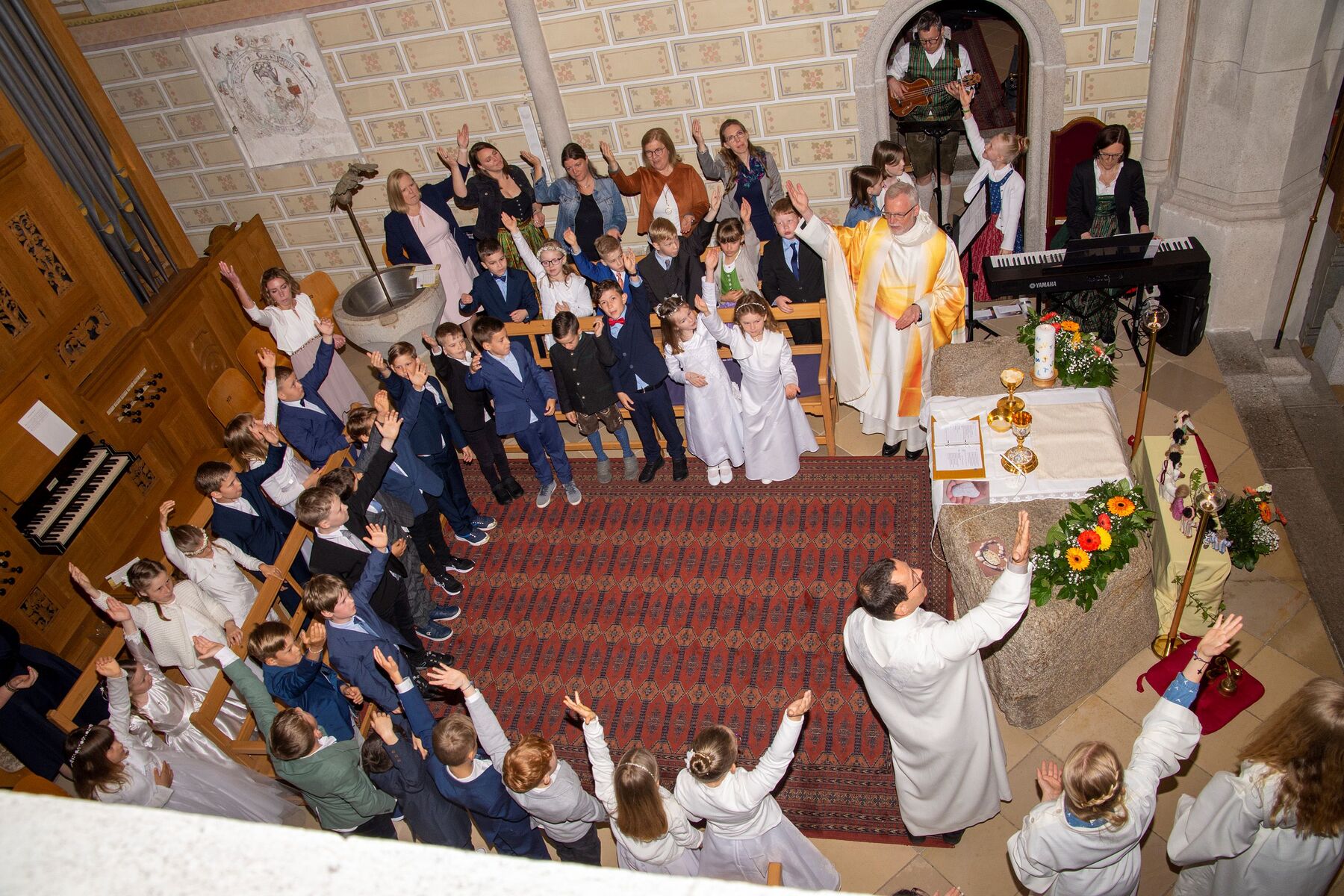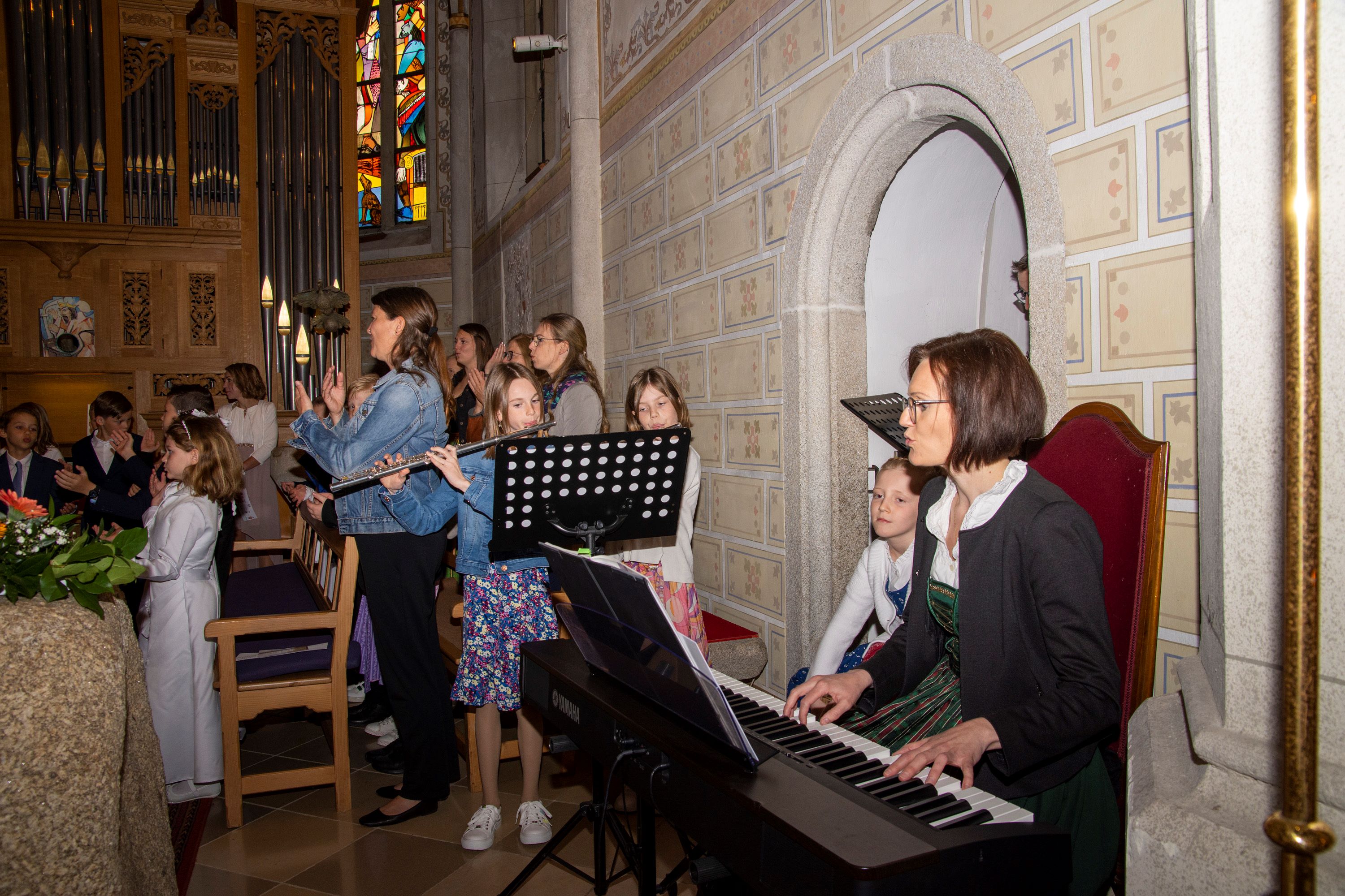 Musikalisch begleitet wurde die Feier von Sonja Schmidlechner (Orgel und Klavier). Amelie Viehböck, Sophie Kriechbaum-Gruber (beide Querflöte), Elena Schmidlechner (Cajon) und Matthäus Schmidlechner (E-Bass und Ukulele) vervollständigten die Erstkommunions-Combo, die den schönen Gesang der Erstkommunionkinder begleitete.
