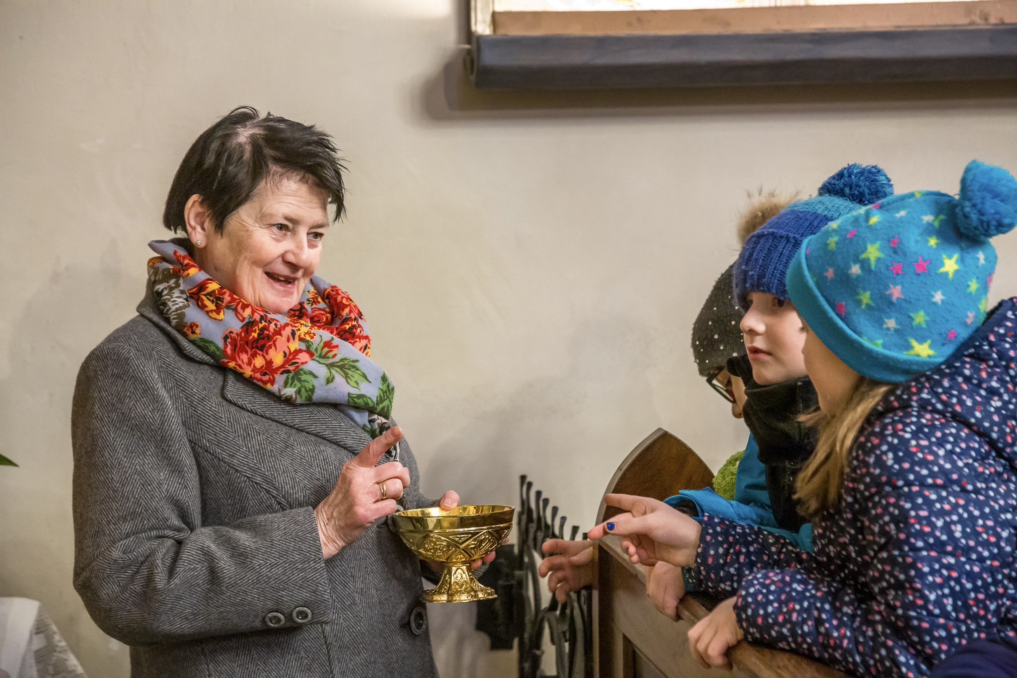 Ein weiteres Highlight waren die Kirchenführungen mit Waltraud Möstl, die bereits seit vielen Jahren Kinder in der Vorbereitungszeit durch die Kirche begleitet.