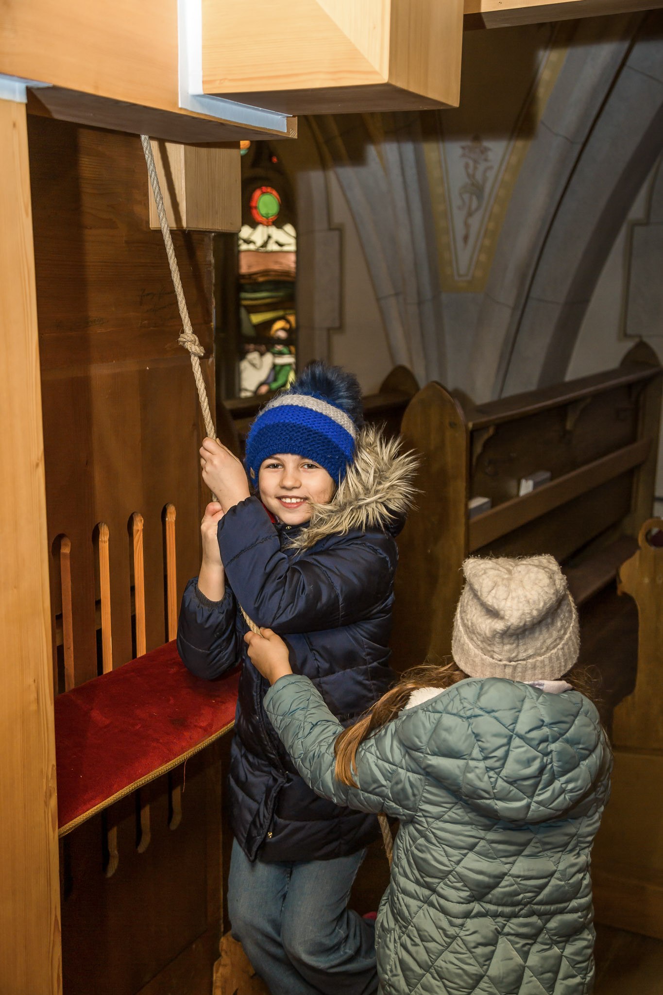 Vom Keller (Krypta) bis hinauf zum Dachboden konnten die Kinder unsere Pfarrkirche aus neuen Perspektiven entdecken. Dabei durften sie auch die Orgel ausprobieren und die Glocken aus nächster Nähe bestaunen – ein unvergessliches Erlebnis!