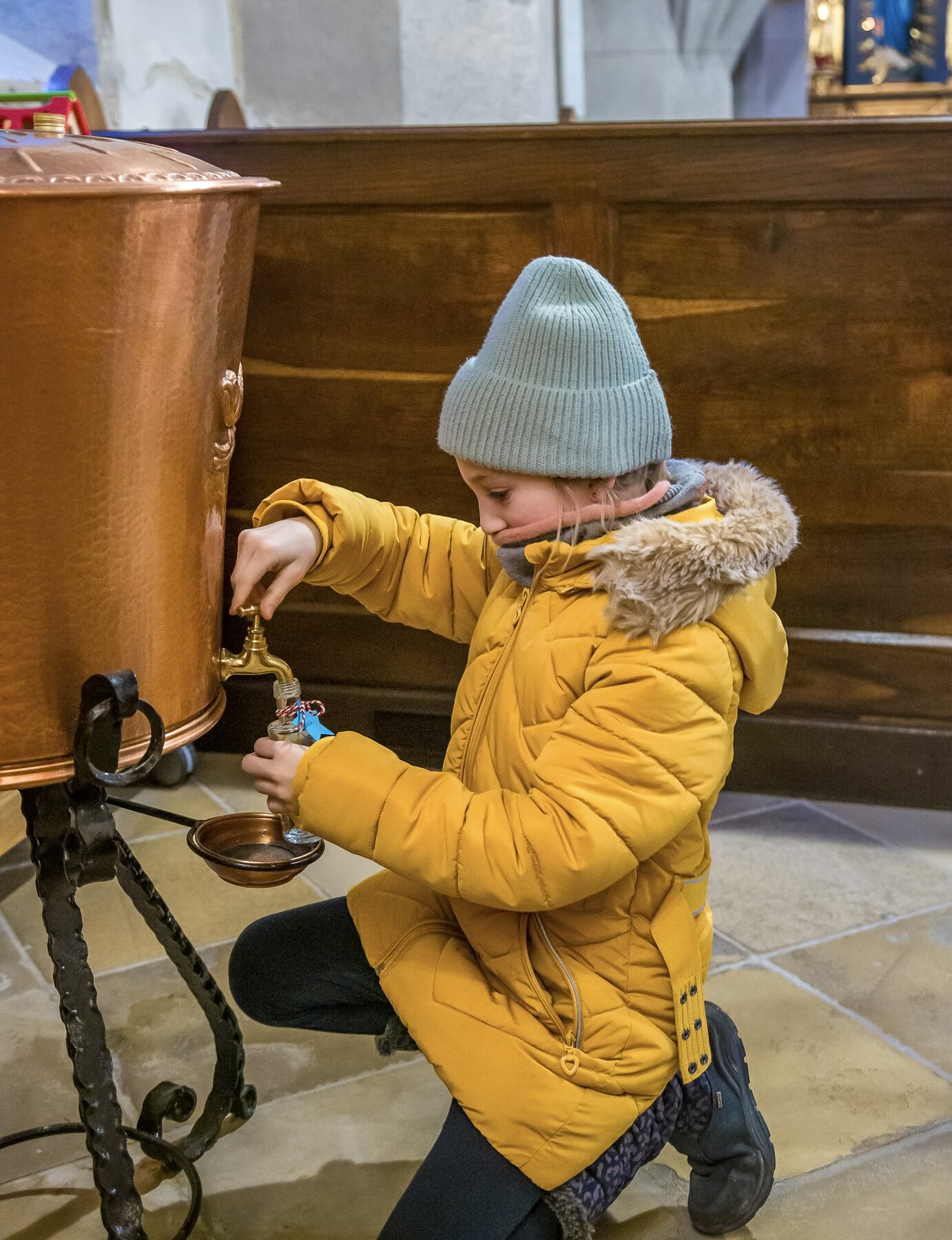 Aber auch ihre gestalteten Weihwasserflaschen durften sie selbst befüllen und mit nach Hause nehmen.