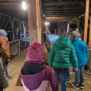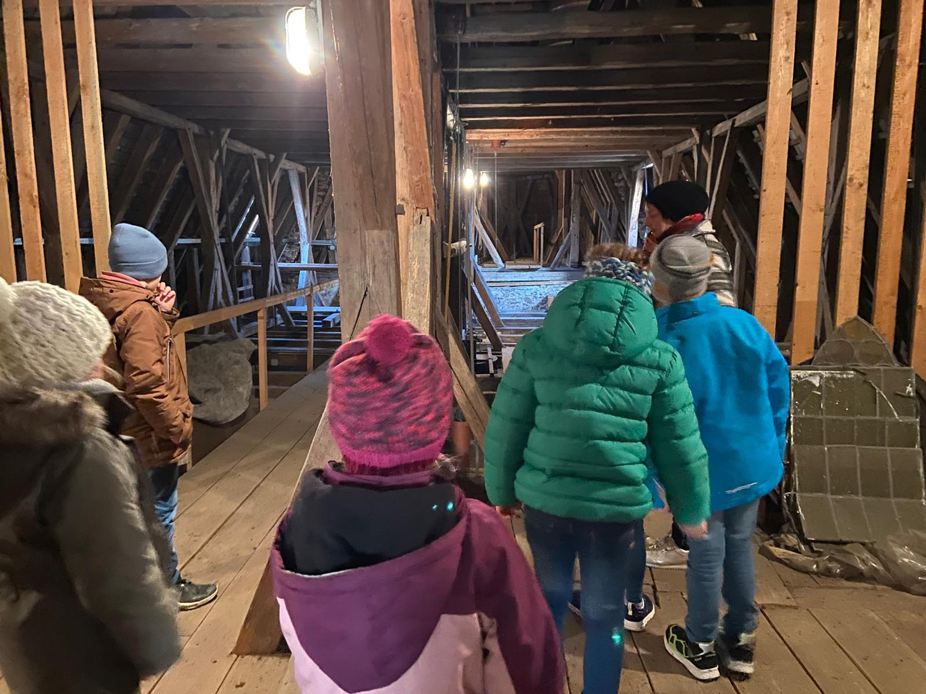 Jährlicher Fixpunkt sind die Kirchenführungen mit Waltraud Möstl. Von der Krypta bis hinauf zum Dachboden durften die Kinder neue Perspektiven entdecken. Die Orgel wurde ausprobiert, die Glocken bestaunt – ein echtes Abenteuer!