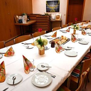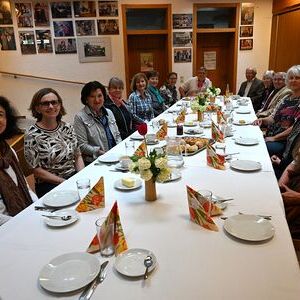 Haussammler*innen beim gemütlichen Frühstück nach dem Gottesdienst im Pfarrheim, bei dem auch die Einteilung der Gebiete erfolgte.