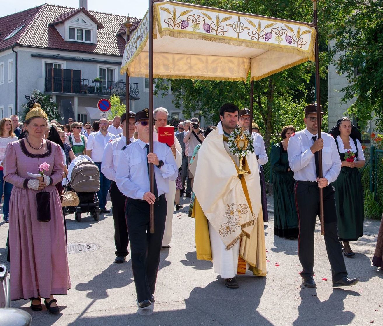 Bei strahlendem Wetter und unter reger Beteiligung der Vereine, Goldhaubenfrauen und Erstkommunionkinder konnte am 19. Juni 2025 das „Hochfest des Leibes und Blutes Christi“, wie Fronleichnam seit 1970 offiziell heißt, wieder traditionell mit eucharistischer Prozession gefeiert werden.