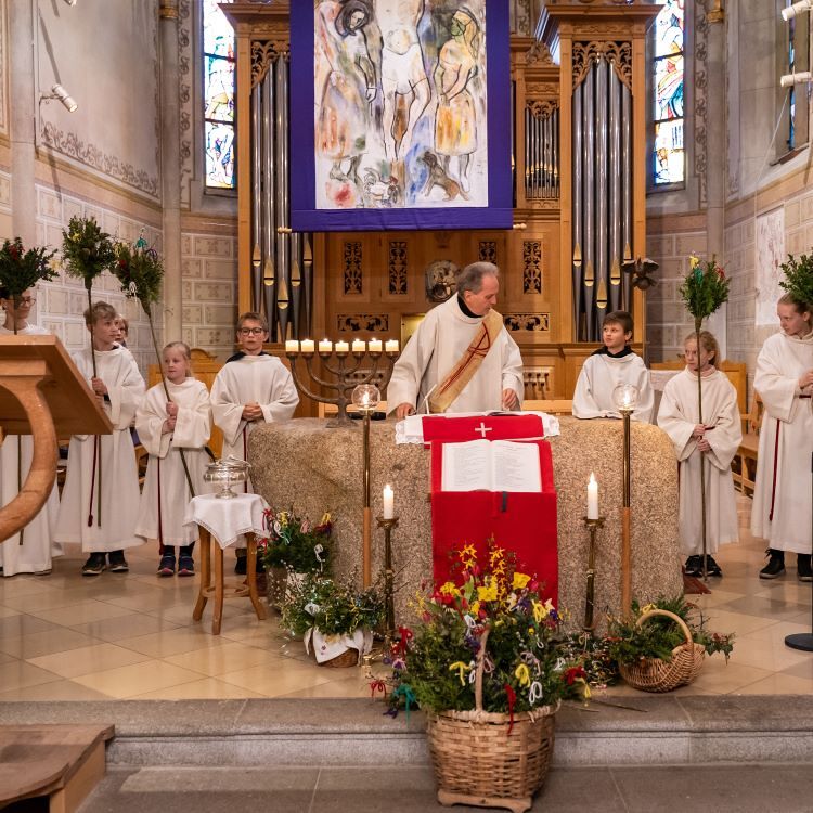 An keinem anderen Tag im Kirchenjahr liegen Anfang und Ende, Freude und Leid so nahe beieinander wie am Palmsonntag – vom Jubel bis hin zum Leid am Karfreitag mit dem Tod Jesu am Kreuz. Wunderschön dargestellt wurde die Liturgie von vielen Minis und musikalisch äußerst würdig umrahmt von Matthäus und Sonja Schmidlechner sowie dem Posaunenquartett des MV Schönering.